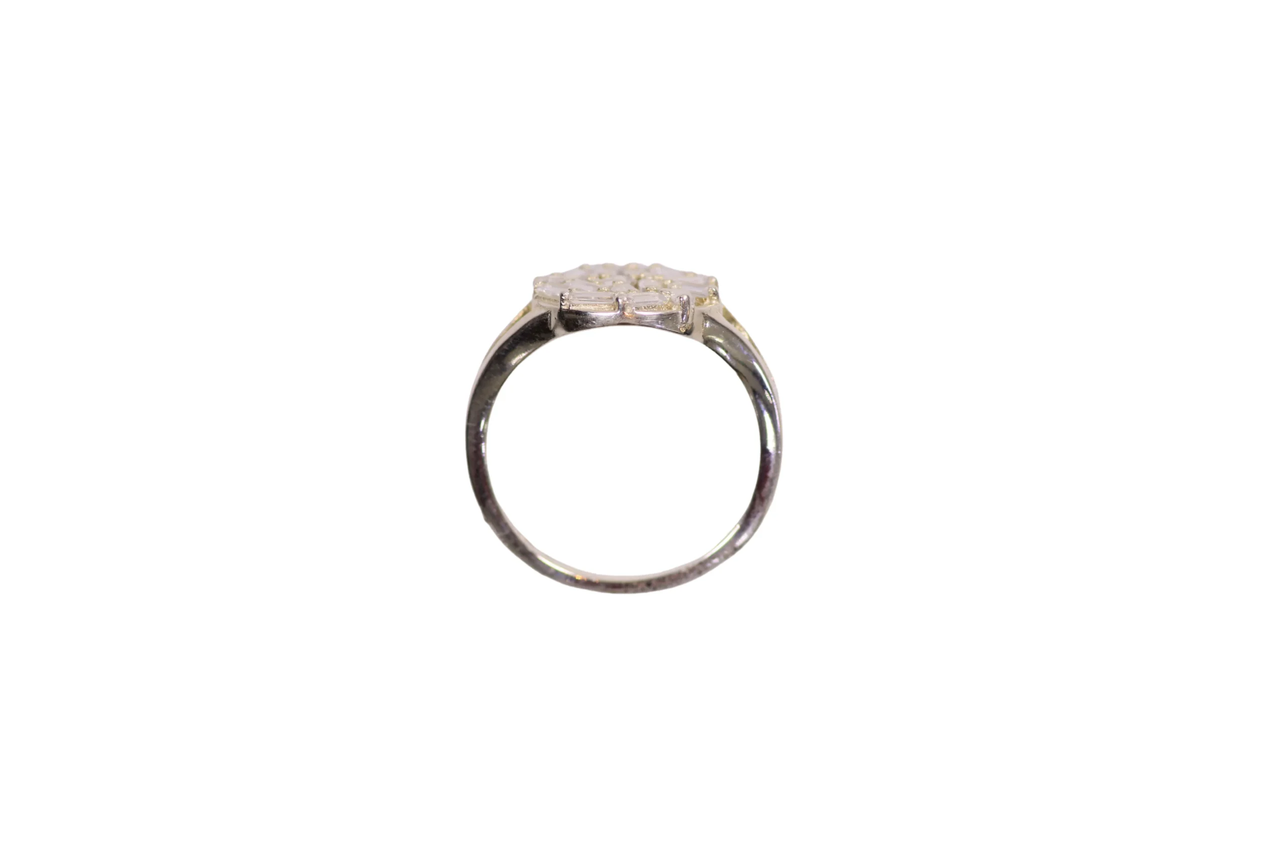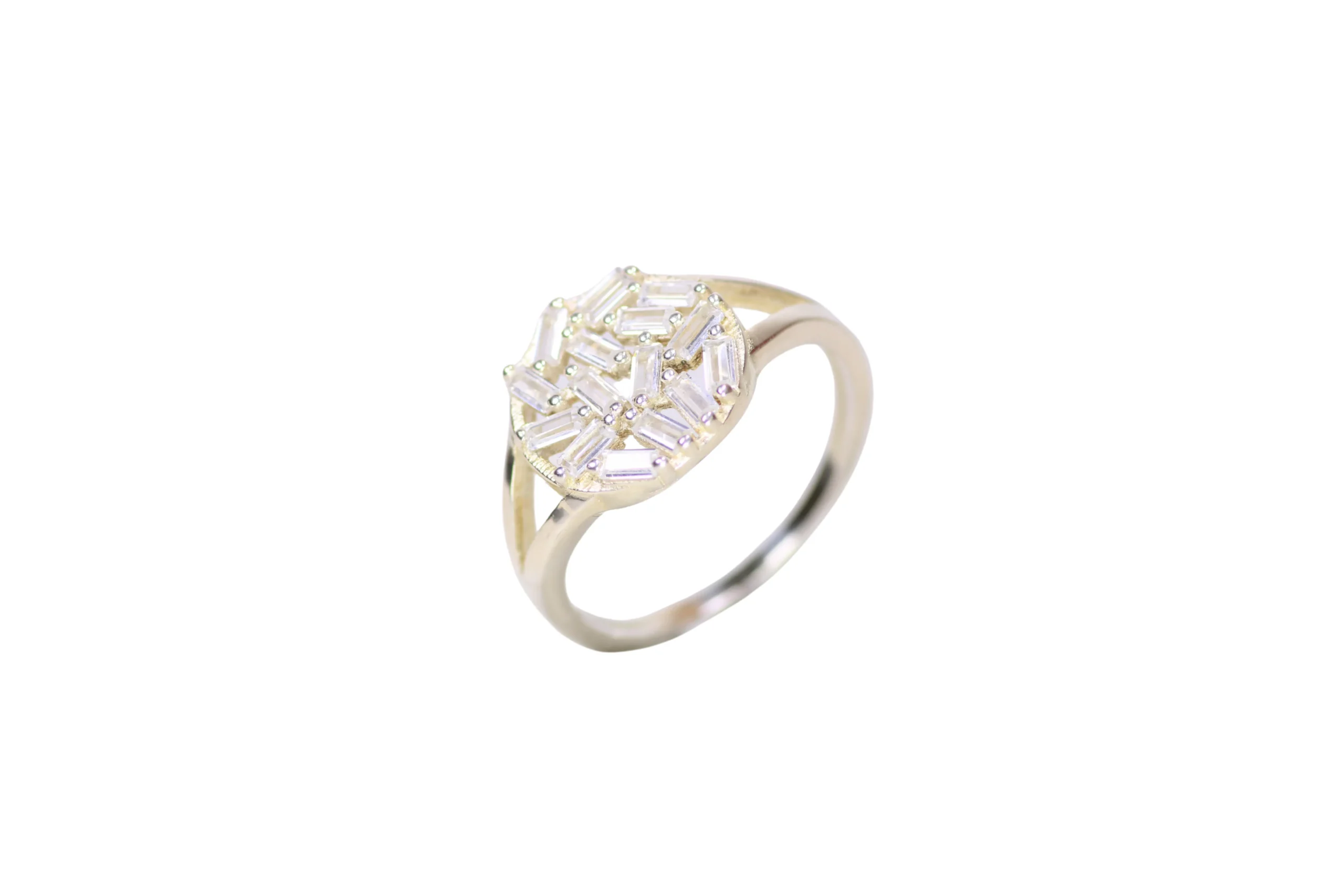 Este impresionante anillo en forma de círculo con baggets y circones es una verdadera joya. Con una talla 7, su diseño elegante y brillante añade un toque de sofisticación a cualquier conjunto. Perfecto para cualquier ocasión especial, este anillo en plata 925 es una pieza imprescindible en tu colección de joyería.
