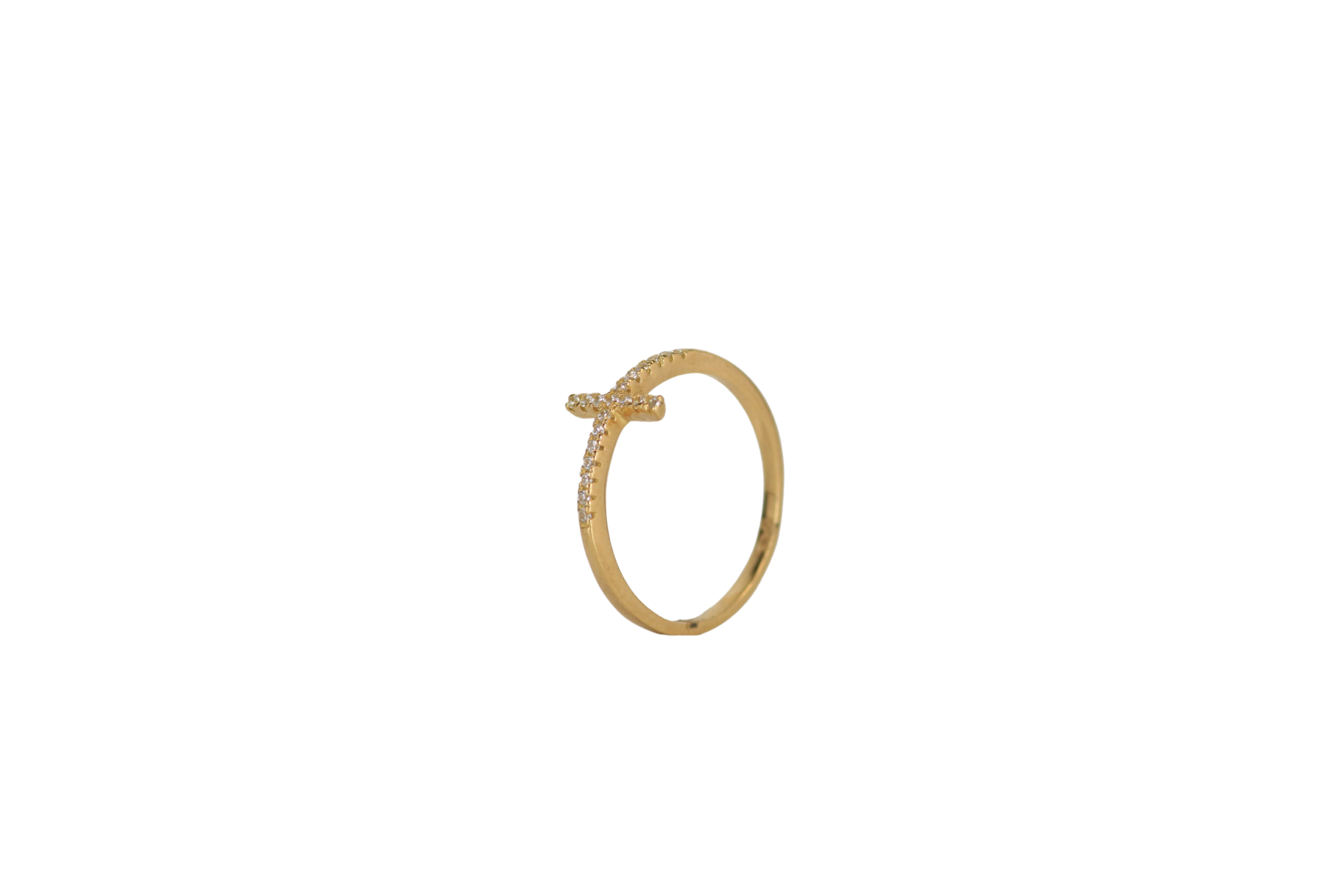 El anillo cruz con circones blancos en oro de 18 kilates destaca por su delicado diseño. En talla 6 y con medidas de 8,4mm x 1,5mm,esta joya combina un símbolo clásico con la luminosidad de los circones,convirtiéndolo en un accesorio ideal para cualquier ocasión.