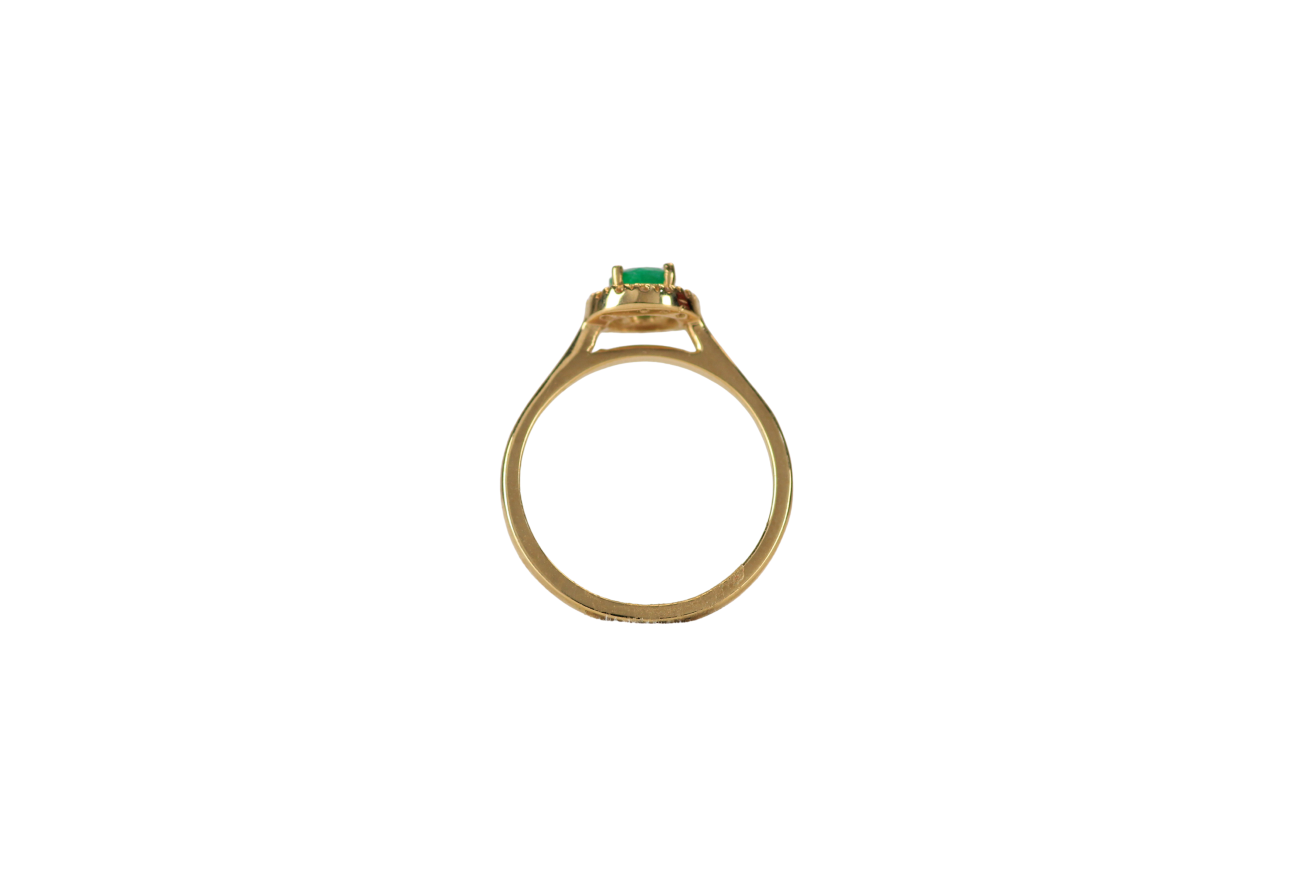 Este majestuoso anillo de talla 6 en oro de 18k exalta la elegancia y el encanto atemporal de una esmeralda central rodeada por un delicado halo de diamantes. La esmeralda,en un corte rectangular que realza su color verde intenso,evoca la serenidad de la naturaleza y simboliza la renovación y la esperanza. Su delicado engaste de oro de 18 quilates complementa la gema,mientras que los diamantes enmarcan sutilmente la esmeralda,aportando destellos de luz y sofisticación. Ideal para quienes buscan una joya con presencia y distinción,este anillo es una pieza de arte y amor que representa la fusión perfecta entre el lujo y la naturaleza en una joya única y exclusiva.