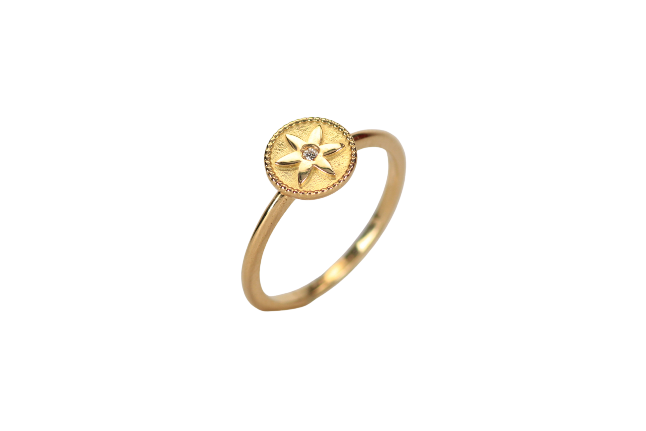 El anillo flor de azahar con diamante Talla 7 de 8,6mm y 1,6mm ofrece un diseño romántico y atemporal. Hecho en oro de 18 KILATES, lleva un diamante de 1,5mm que brinda un toque sutil de luz. Ideal para auto regalarse o sorprender con una pieza que celebra la delicadeza natural.
