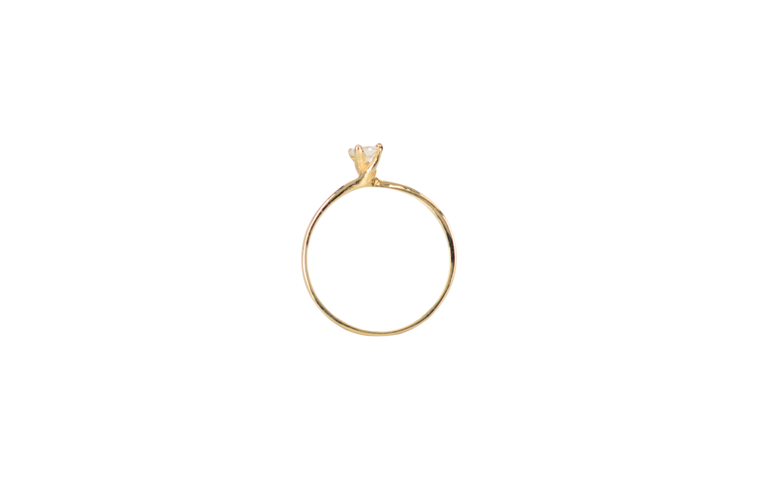 El anillo de promesa con circon solitario de tres uñas en oro de 18 kilates es una joya minimalista y refinada. Con medidas de 4mm x 2,0mm y disponible en talla 6,este diseño destaca por su belleza discreta,ideal para expresar amor eterno de manera sencilla y elegante.