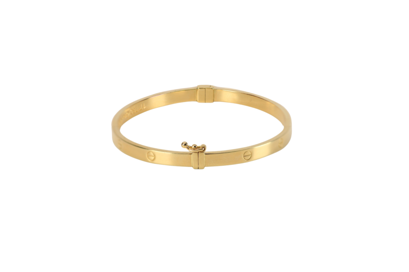 El Aro Cartier de 6,40 cm y 4 mm de ancho es una pieza que resalta por su forma sobria y moderna. Hecho en oro de 18 KILATES, este aro es ideal para quienes desean un diseño pulido con fuerte presencia. Un regalo con mucha clase.