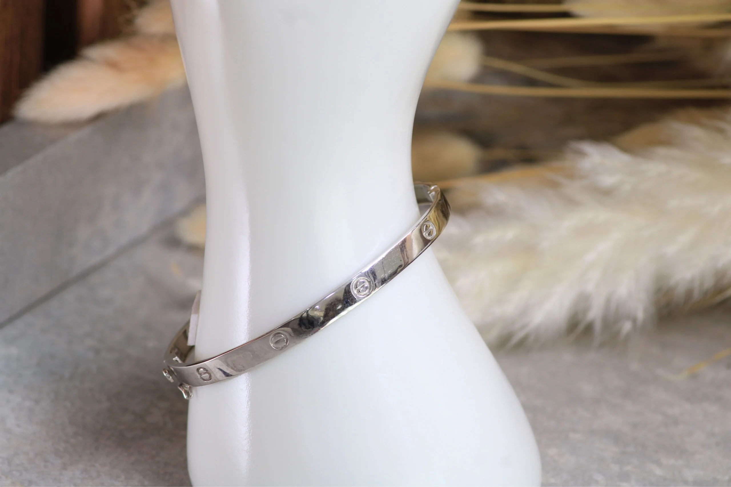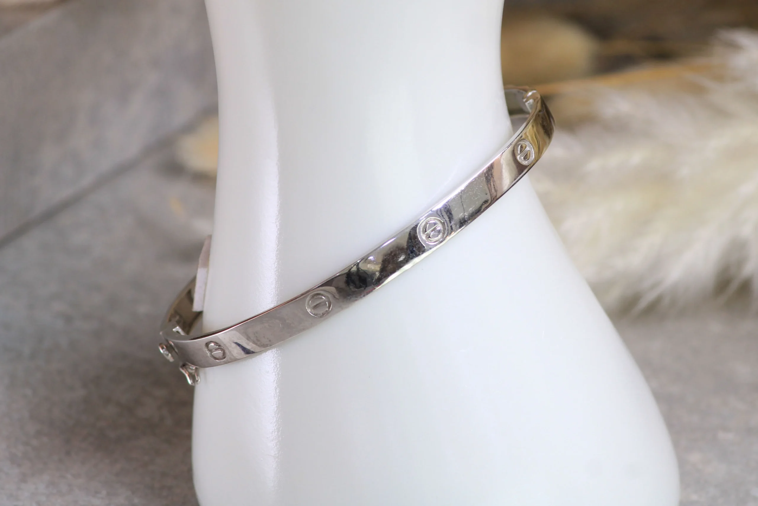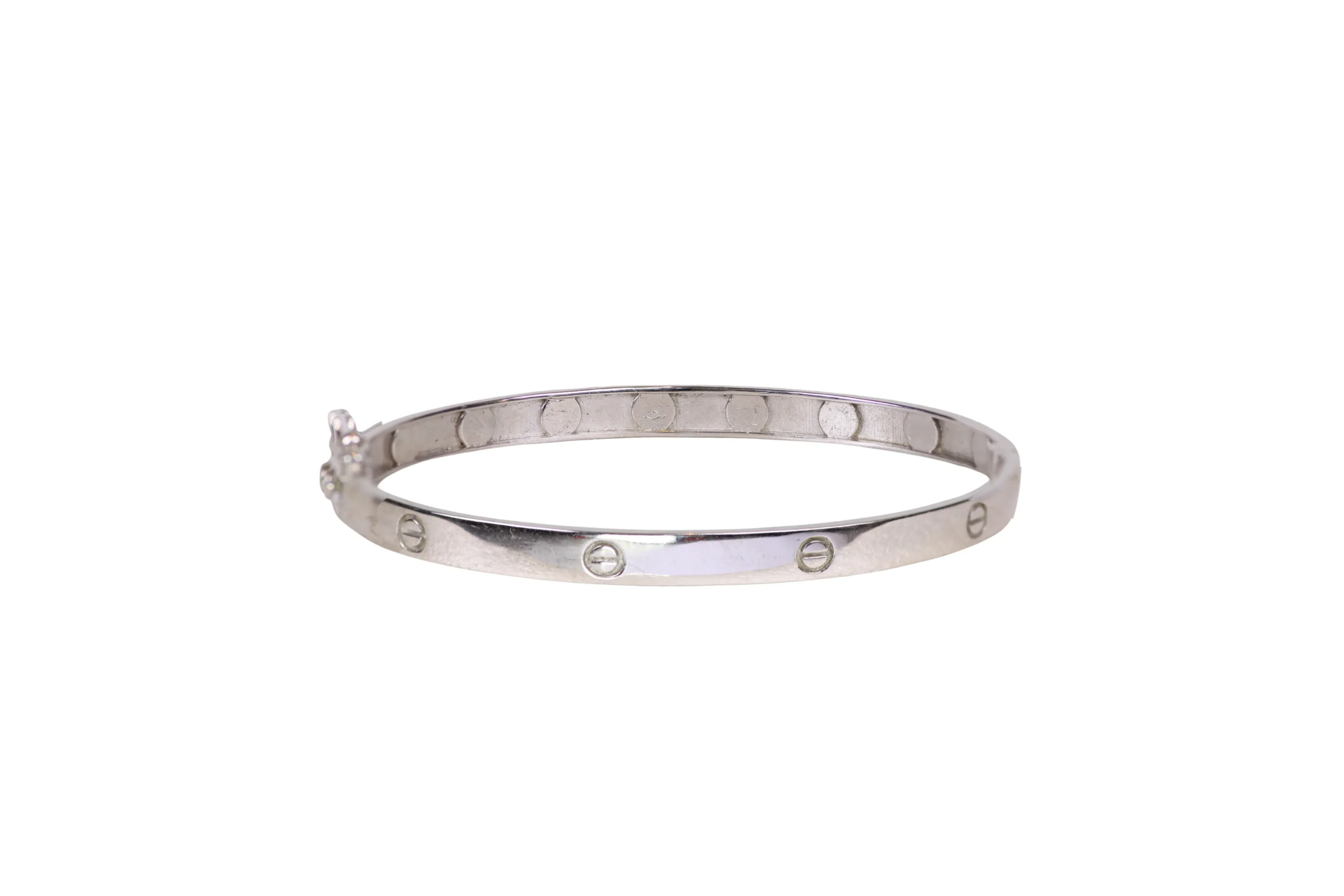 Una joya icónica de diseño moderno. El Aro Love Cartier en oro blanco de 18 kilates de 6,5cm y 5,2mm destaca por su estilo elegante y contemporáneo.
