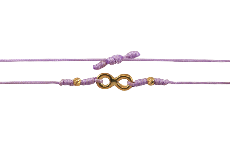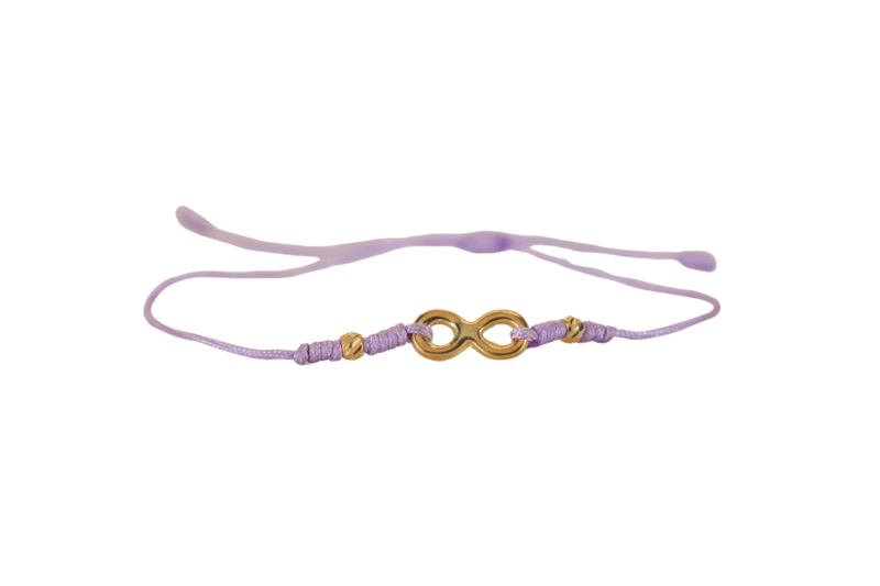 El Brazalete Tejido Lila Infinito en oro de 18k es una joya sutilmente elegante que incorpora el símbolo del infinito,perfecto para quienes valoran los significados profundos en sus accesorios. El tejido lila le añade un toque suave y femenino,mientras el detalle en oro de 18k refleja un brillo atemporal. Este brazalete es ideal para llevar en cualquier ocasión,aportando un estilo único y personal. Además,su garantía de por vida asegura que seguirá brillando con la misma intensidad durante años.