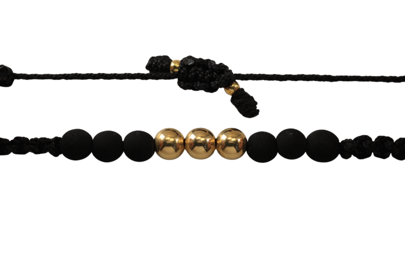 Es la definición de simplicidad elegante. Diseñado con 3 esferas tamaño #6 en oro de 18k,esta pieza se destaca por su estilo minimalista y refinado. El tejido negro crea un contraste sutil que acentúa el brillo dorado de las esferas,logrando un equilibrio visual atractivo y moderno. Su diseño ligero y cómodo lo hace ideal para quienes buscan una joya versátil,perfecta tanto para el uso diario como para ocasiones formales. Este brazalete es una elección atemporal que refleja buen gusto y sofisticación,una pieza indispensable para cualquier colección de joyería.