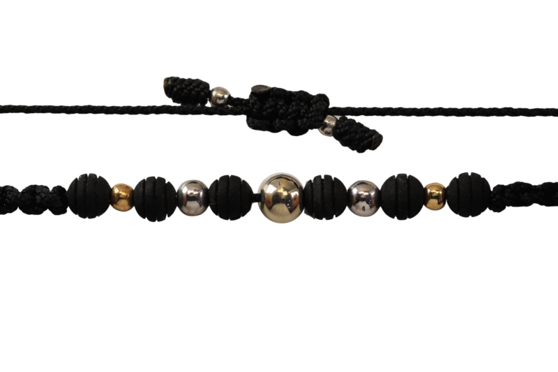 El Brazalete Tejido Negro en dos oros amarillo y blanco es una pieza que combina la sofisticación con la modernidad. Elaborado en oro de 18 quilates,destaca por su elegante contraste entre los tonos dorado y blanco,resaltando su diseño tejido de forma artesanal. El delicado tejido negro sirve como base para enmarcar las esferas de oro,logrando un equilibrio perfecto entre lo clásico y lo contemporáneo.