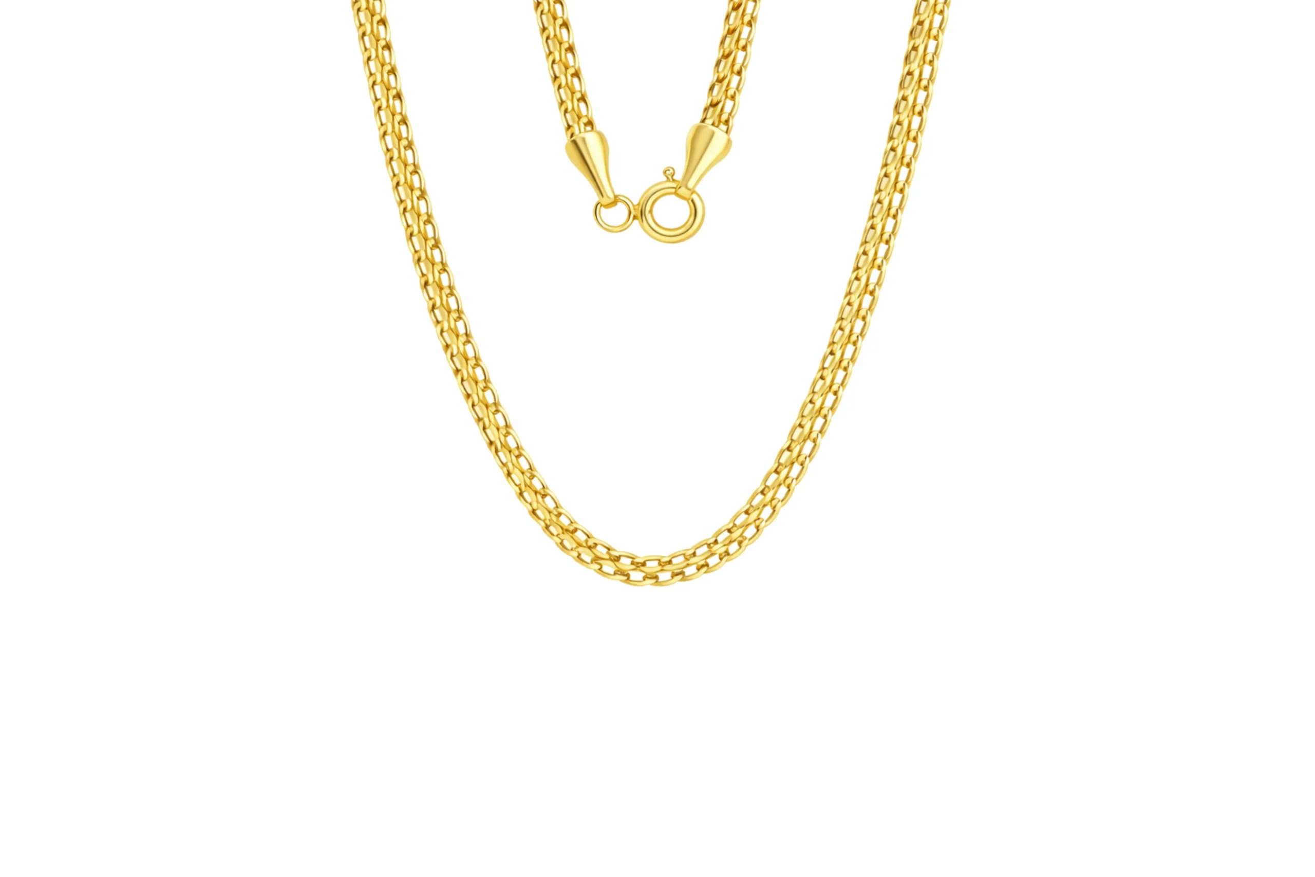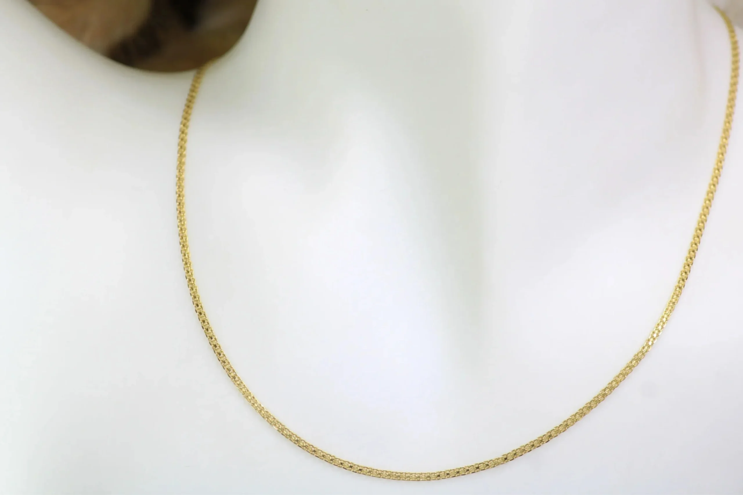 Una joya estilizada con mayor longitud y versatilidad. La Cadena Bismark en oro de 18 kilates de 60cm y 1,44mm destaca por su diseño refinado y caída elegante. Elaborada cuidadosamente, ofrece brillo uniforme, comodidad y estructura resistente. Ideal para llevar sola o combinar con dijes, es una cadena pensada para perdurar con elegancia atemporal.