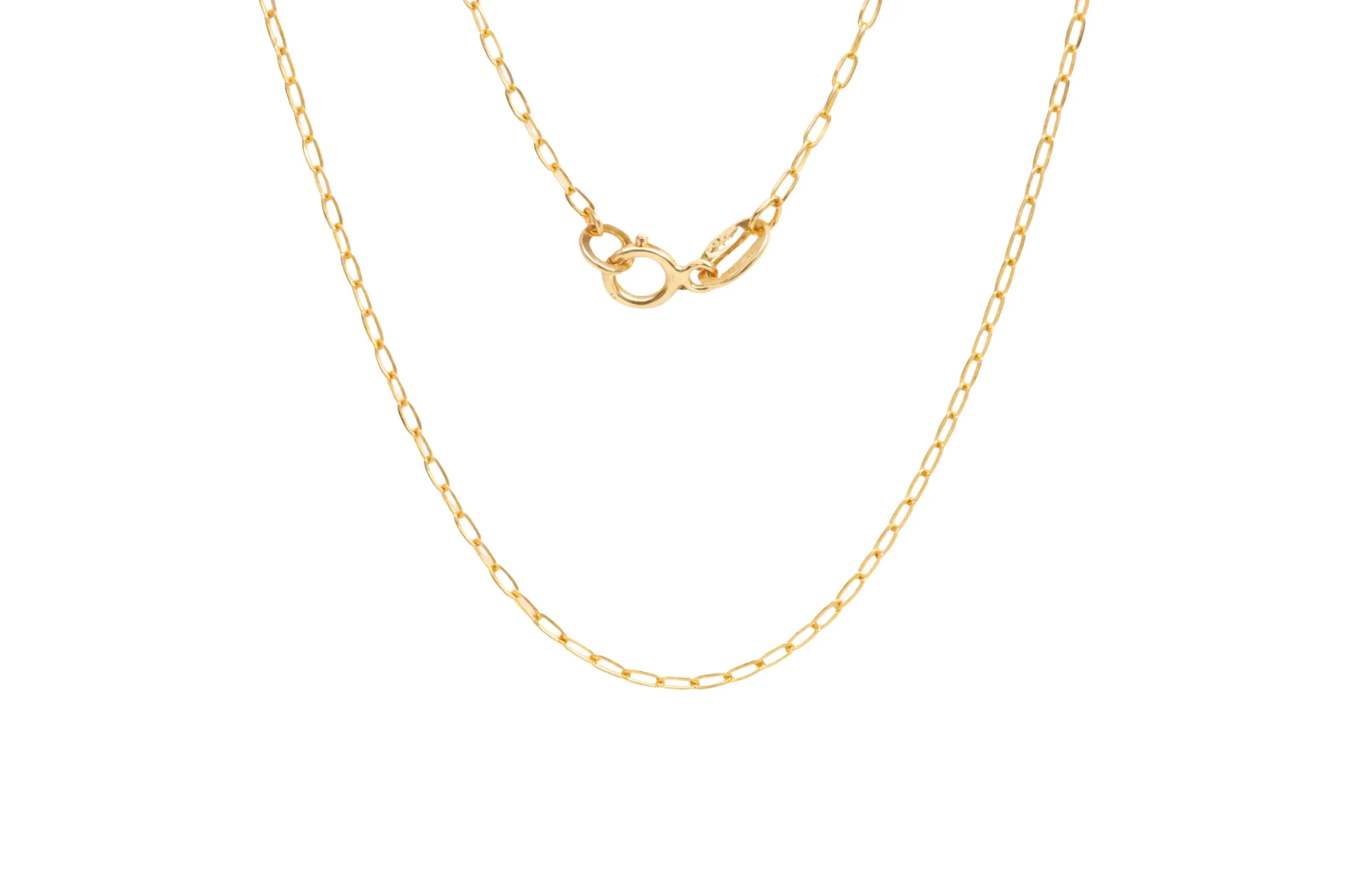 Una joya delicada que aporta sutileza refinada. La Cadena Clip en oro de 18 kilates de 45cm y 1mm destaca por su proporción ligera y diseño minimalista, ideal para un estilo discreto y elegante. Elaborada cuidadosamente, presenta acabado pulido que realza el brillo natural del oro y ofrece comodidad. Perfecta para combinar con dijes pequeños o llevar sola, es una cadena pensada para perdurar con elegancia atemporal.