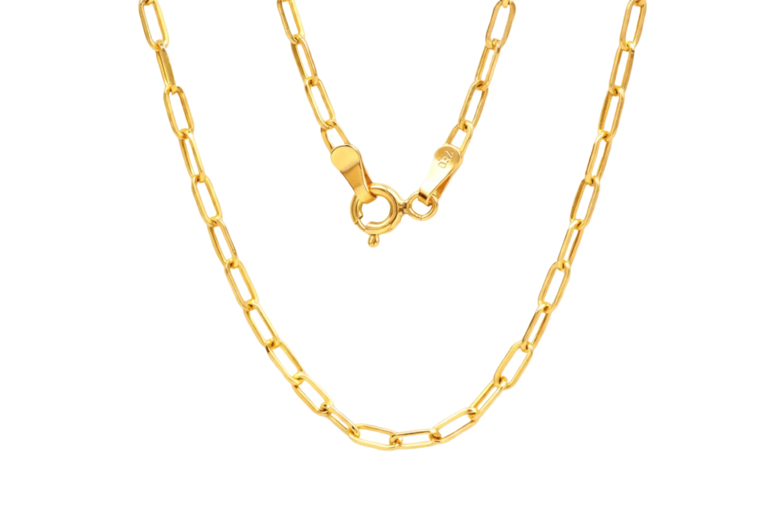 Una joya moderna y sofisticada de líneas limpias. La Cadena Clip en oro de 18 kilates de 40cm y 2,25mm destaca por su diseño estilizado y estructura contemporánea, ideal para quienes buscan una pieza elegante y versátil. Elaborada por joyeros expertos, ofrece brillo uniforme, resistencia y comodidad para el uso diario. Perfecta para llevar sola o acompañar con dijes, es una cadena pensada para perdurar con distinción y carácter refinado.
