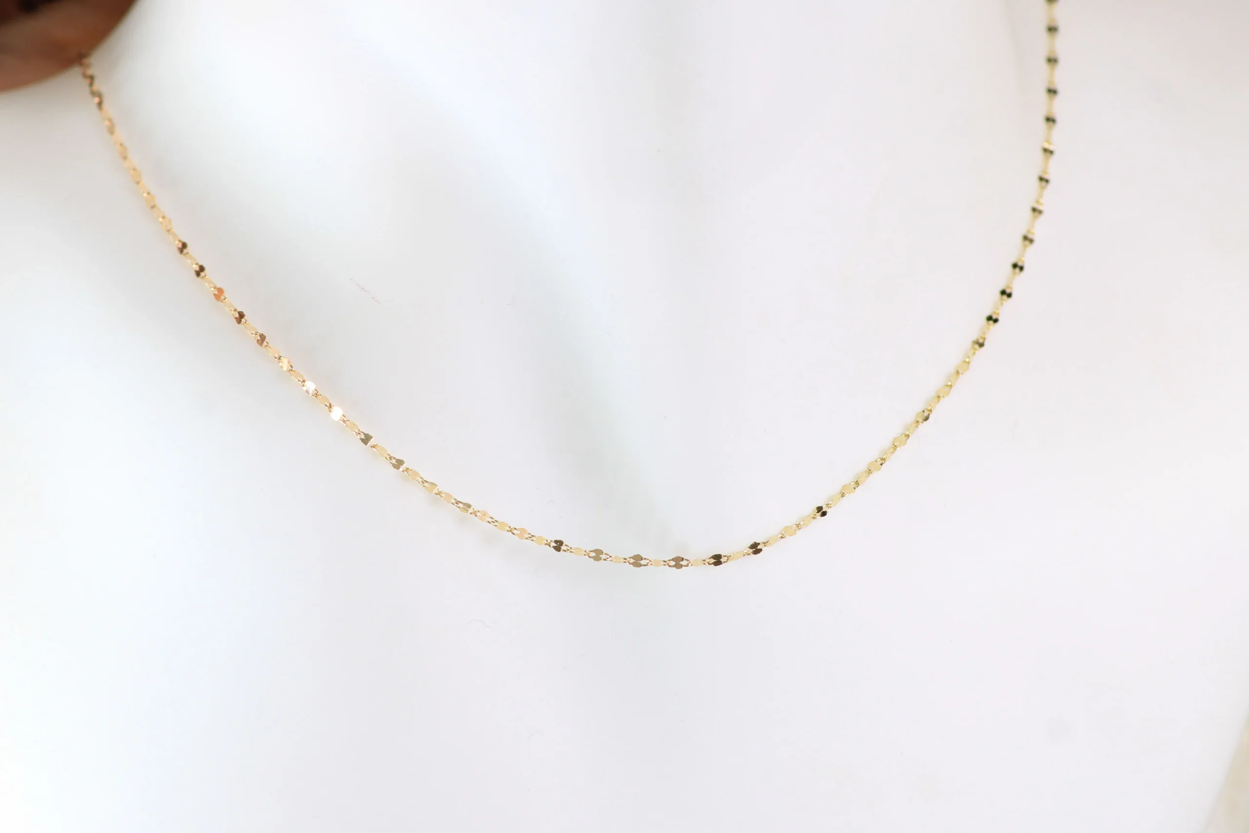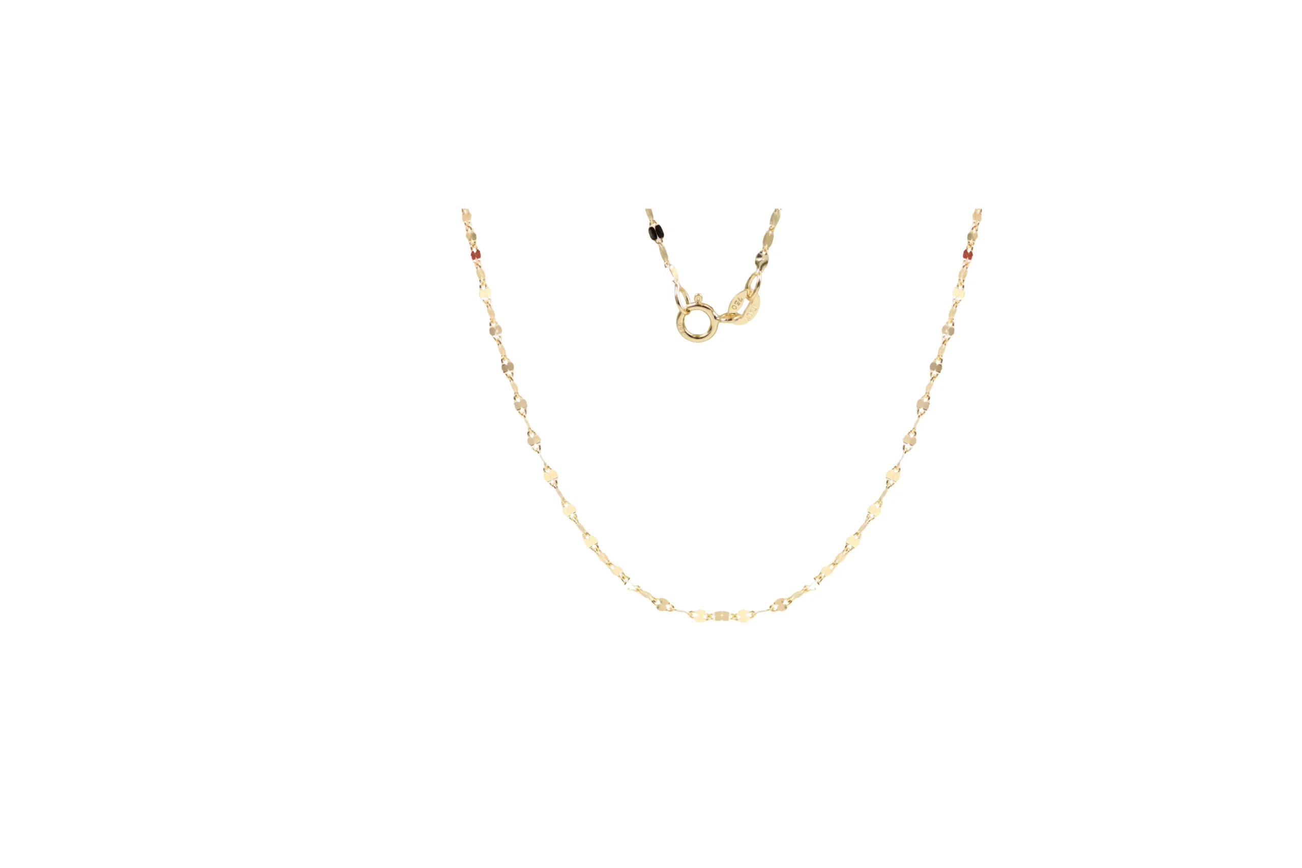 Una joya clásica que destaca por su delicadeza y elegancia. La Cadena Crispeta en oro de 18 kilates de 40cm y 0,5mm ofrece un diseño fino y sutil, ideal para quienes buscan una pieza discreta con brillo propio.