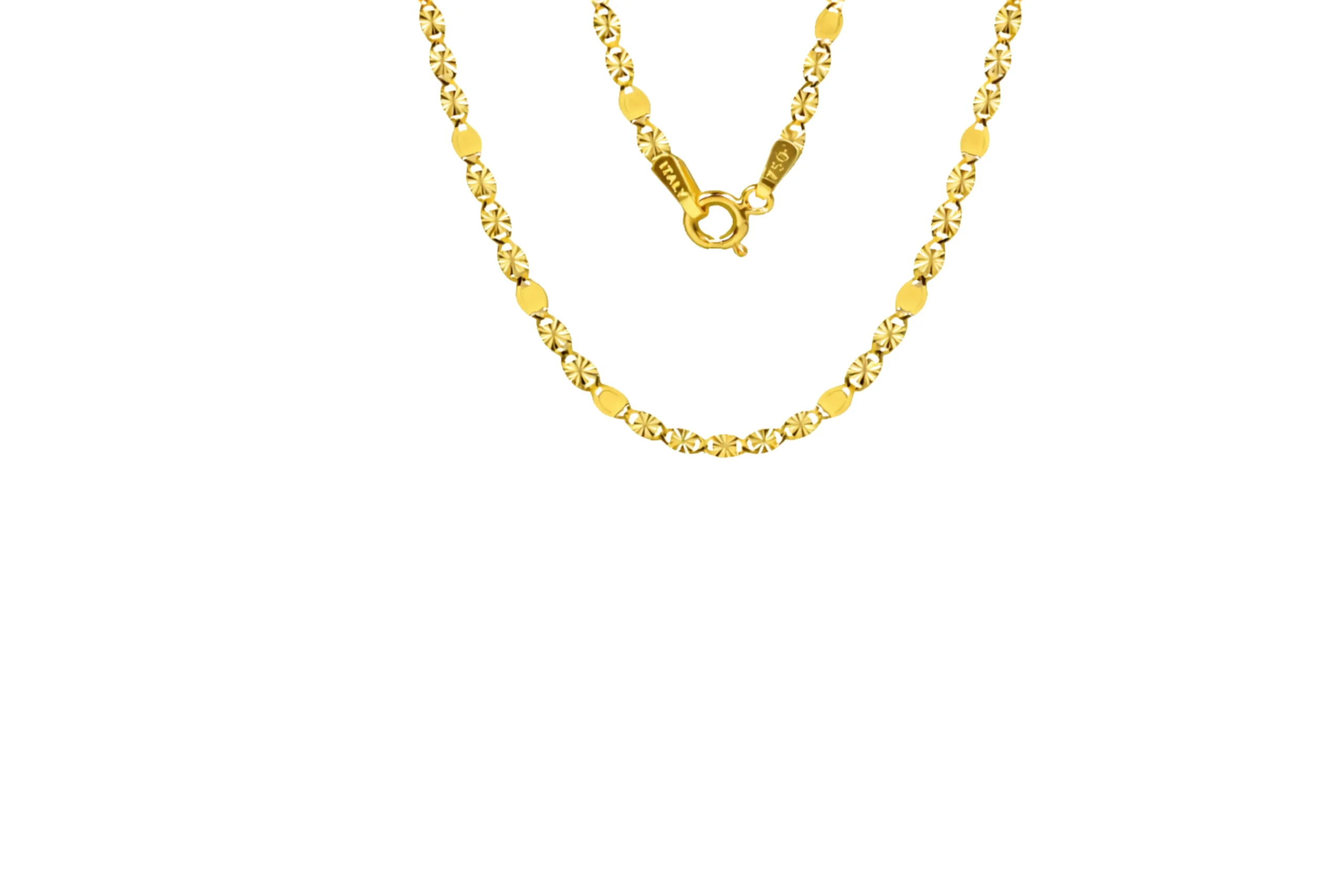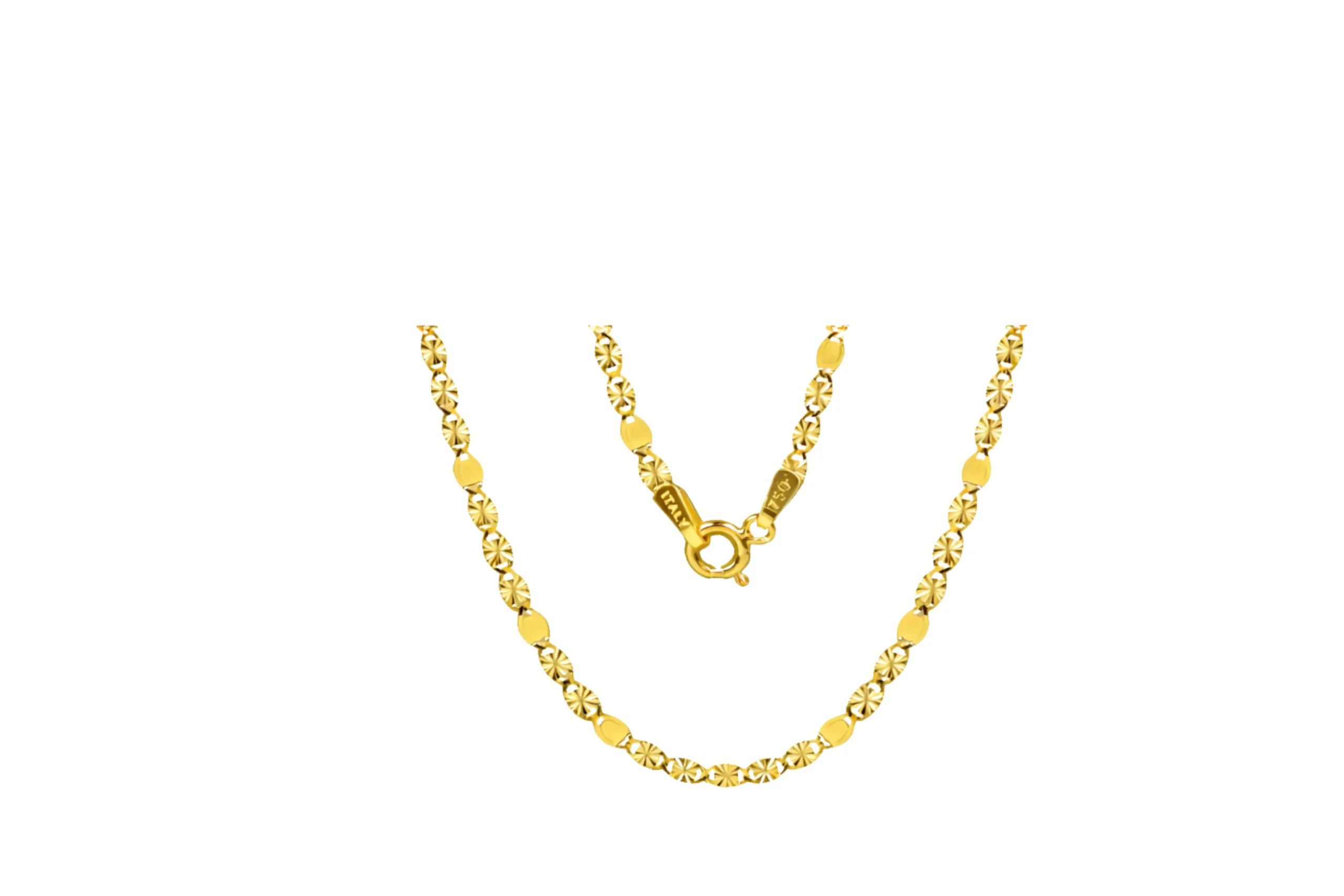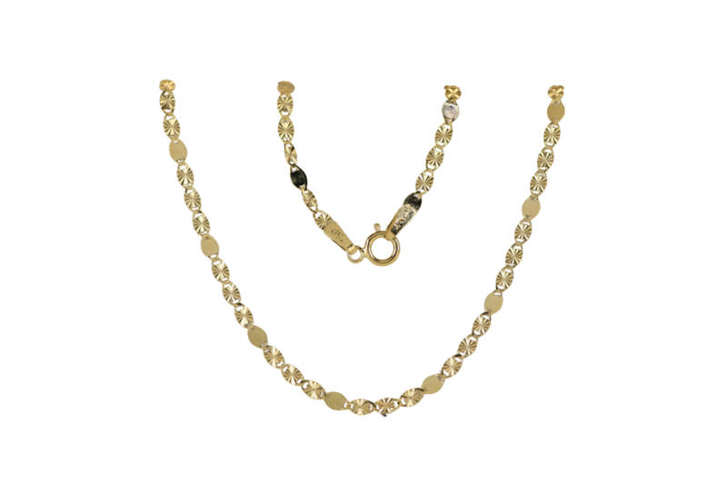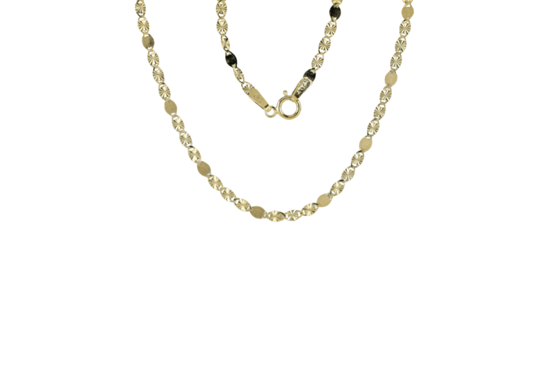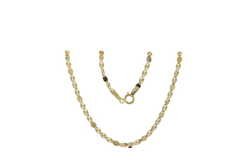 Cadena Crispeta Valentino de 45 cm con grosor de 2 mm x 0,2 mm en oro de 18 KILATES. Un estilo llamativo y refinado que aporta un brillo especial.