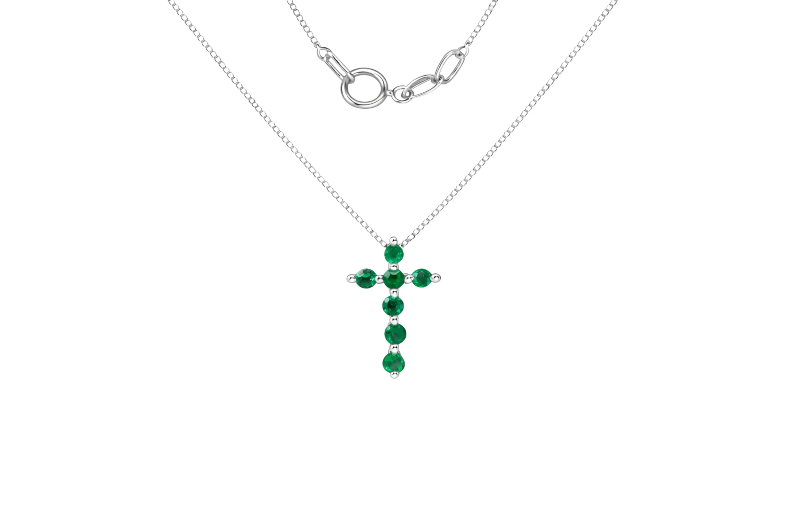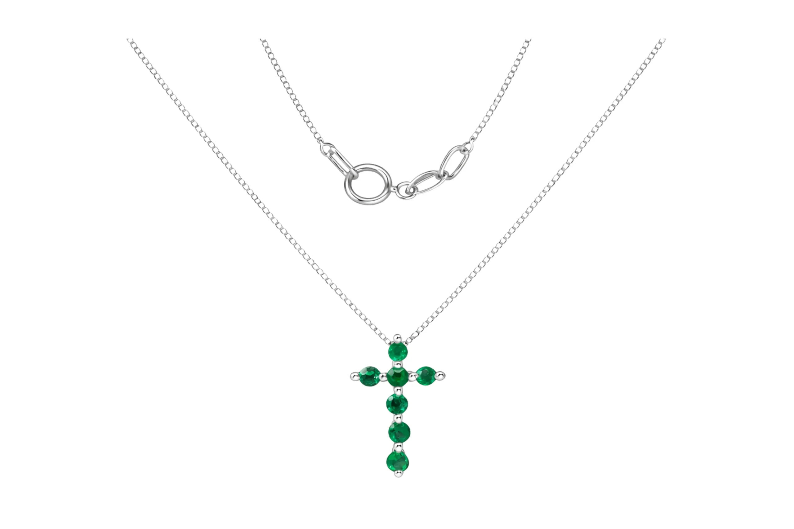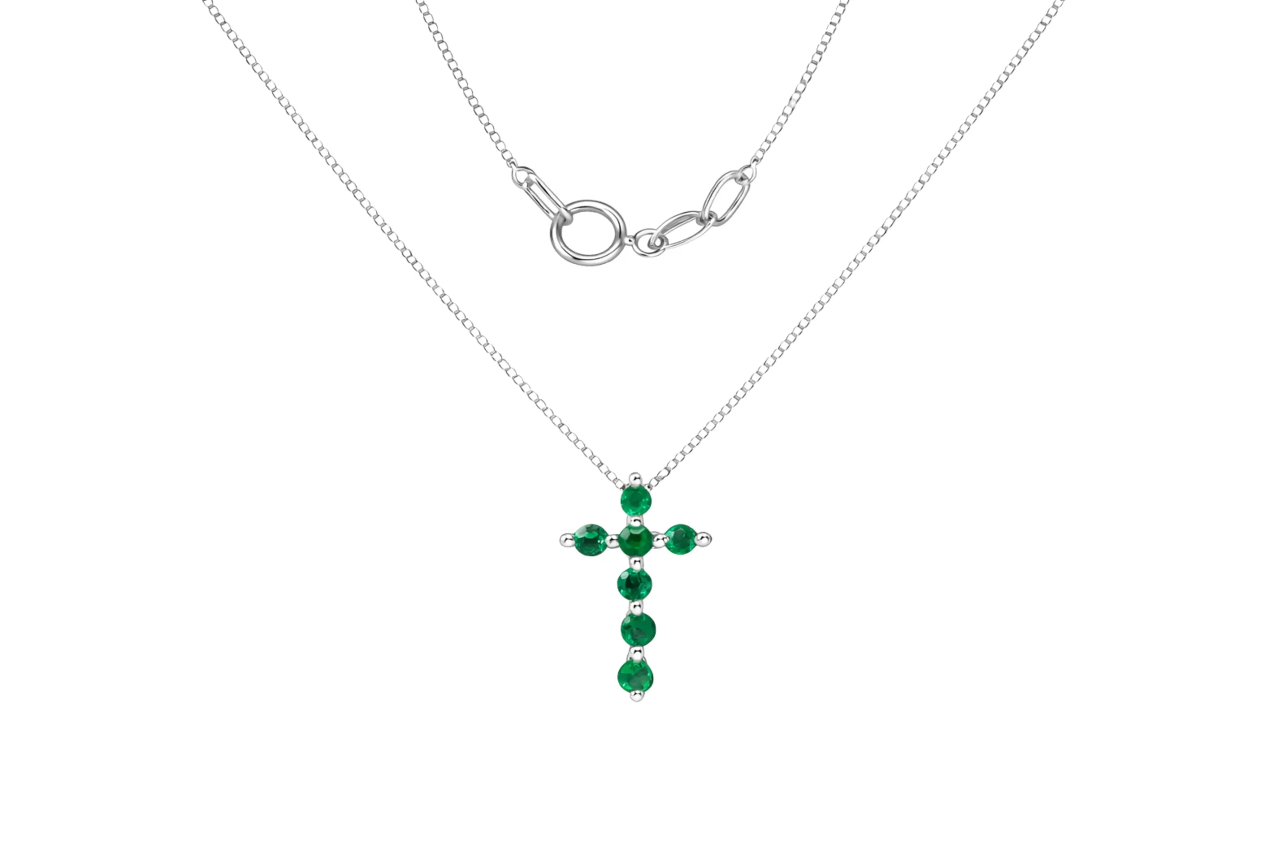 Cadena Cruz Esmeralda Oro Blanco (0.35ct) 18K 40cm 15,1mm-9,4mm