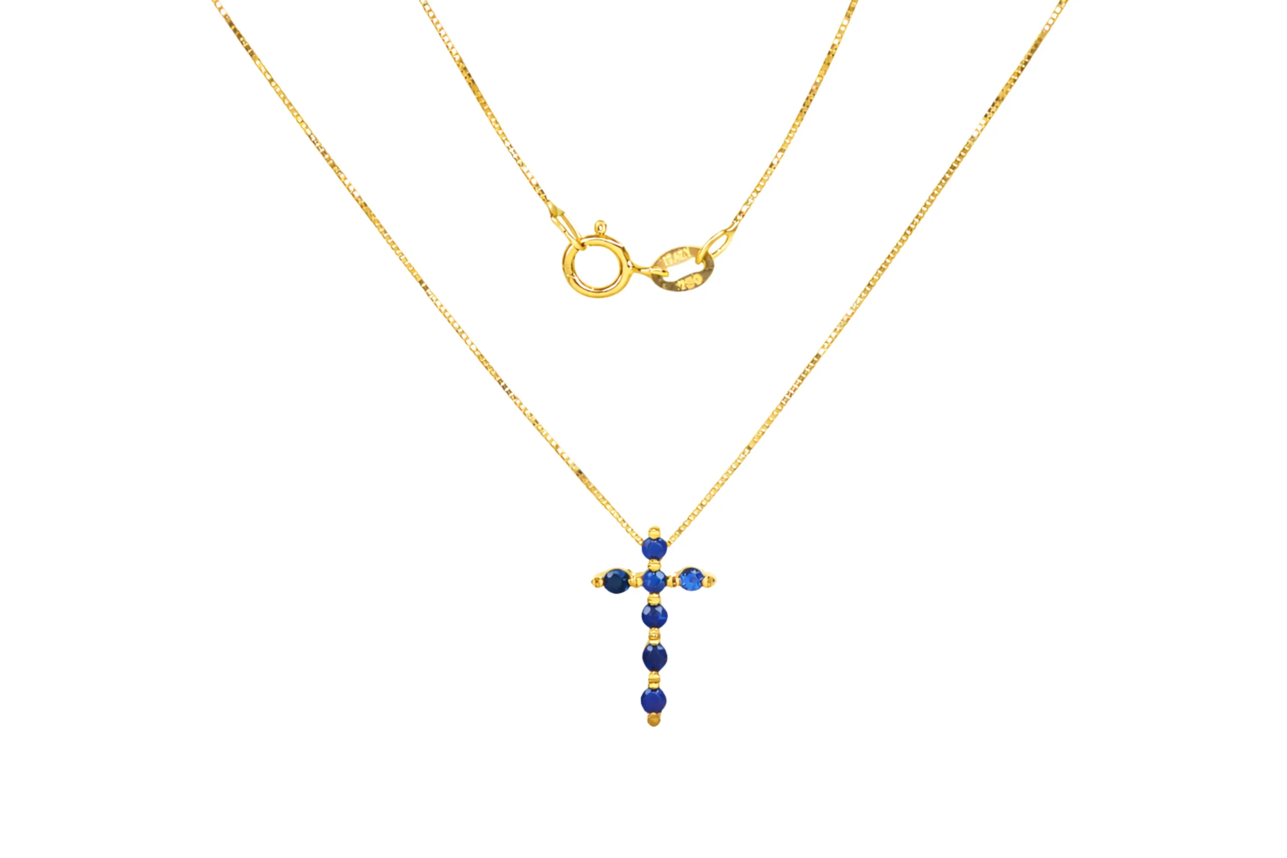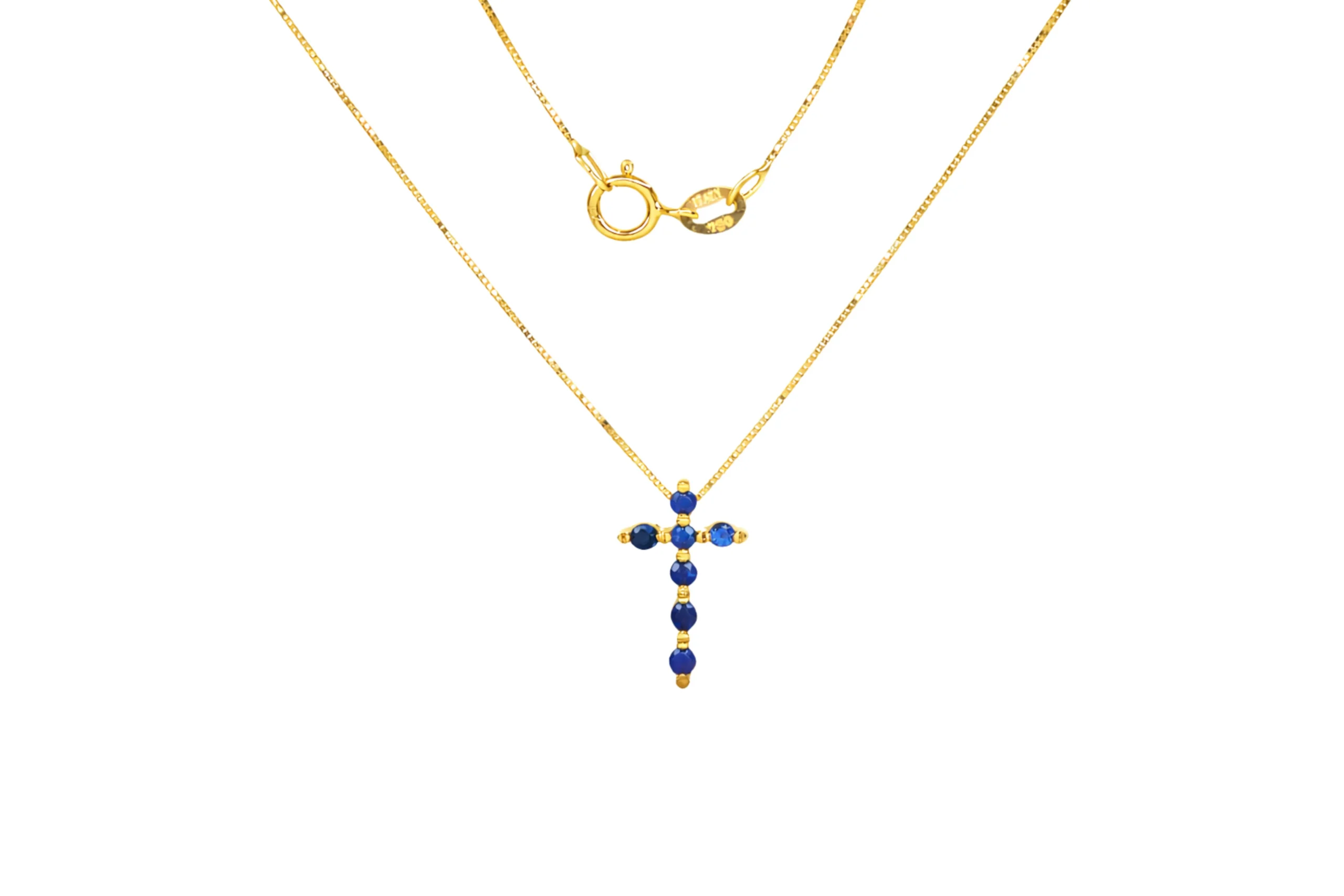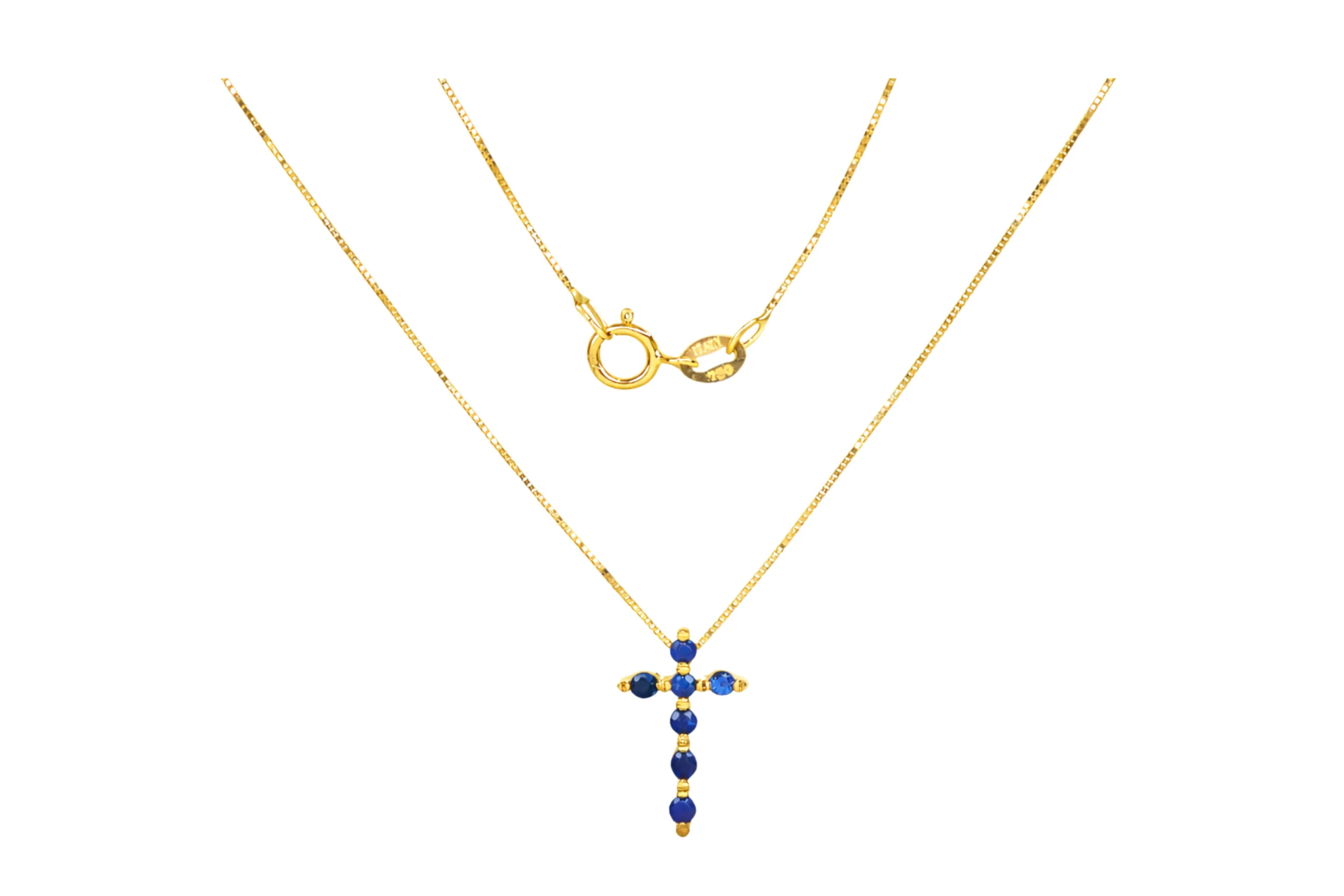 Una joya elegante que transmite serenidad y profundidad. La Cadena Cruz Zafiro en oro de 18 kilates con 0,30 quilates de 40cm y dije de 14,8mm por 9,5mm incluye cadena y dije, destacando por su azul intenso y diseño refinado. Elaborada por joyeros expertos, ofrece brillo uniforme y estructura cómoda. Perfecta para uso diario o especial, es una pieza pensada para perdurar con sofisticación.