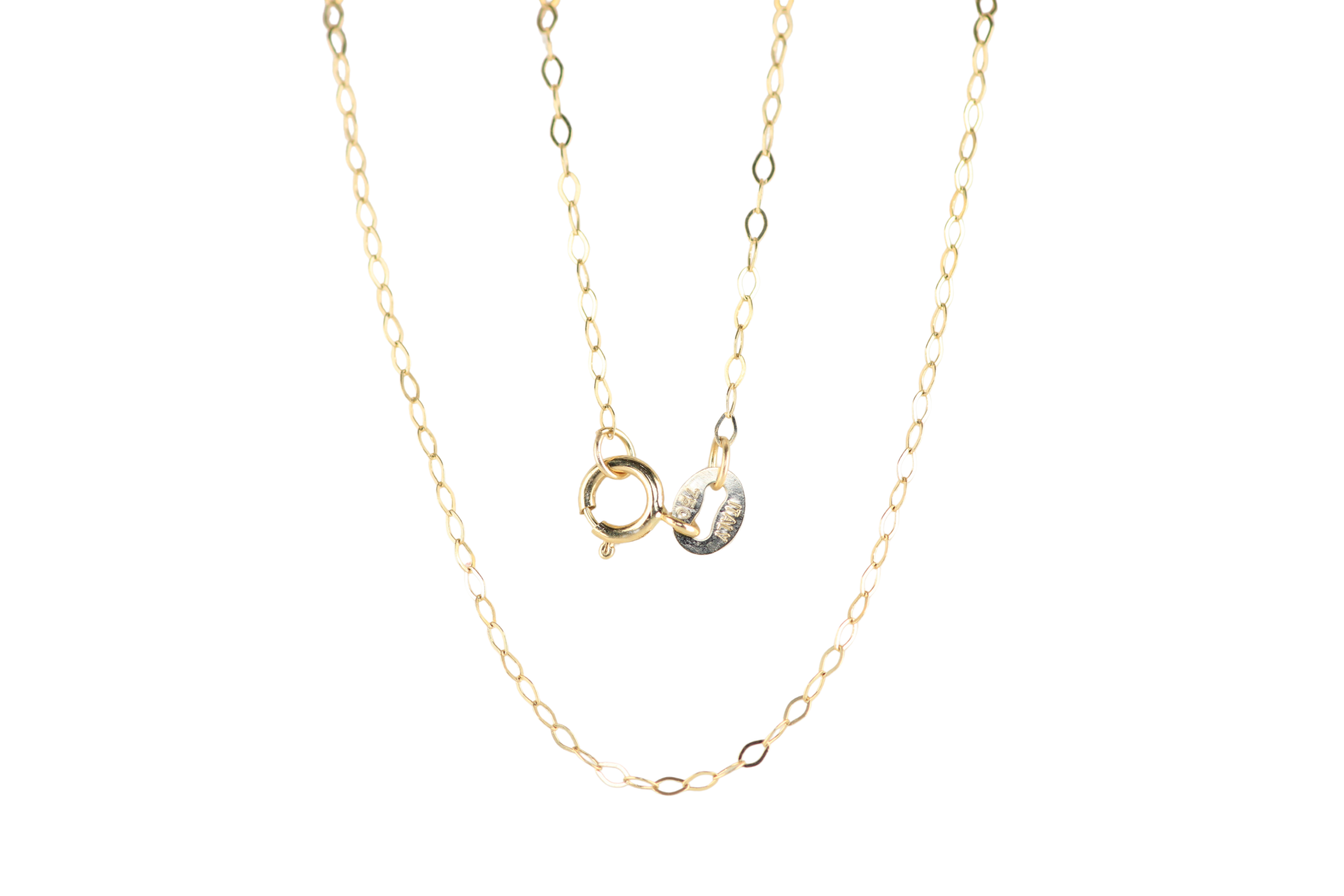 Esta cadena eslabón de 50 cm y 1 mm de grosor es una pieza básica pero elegante para cualquier colección de joyas. Fabricada en oro de 18 kilates, su diseño versátil es perfecto para usar solo o con un colgante, haciendo que se adapte a diferentes estilos y ocasiones. Con un largo ideal, se ajusta cómodamente al cuello, proporcionando un toque de luminosidad discreta pero sofisticada. Esta cadena es la opción perfecta para quienes buscan una pieza clásica y duradera.