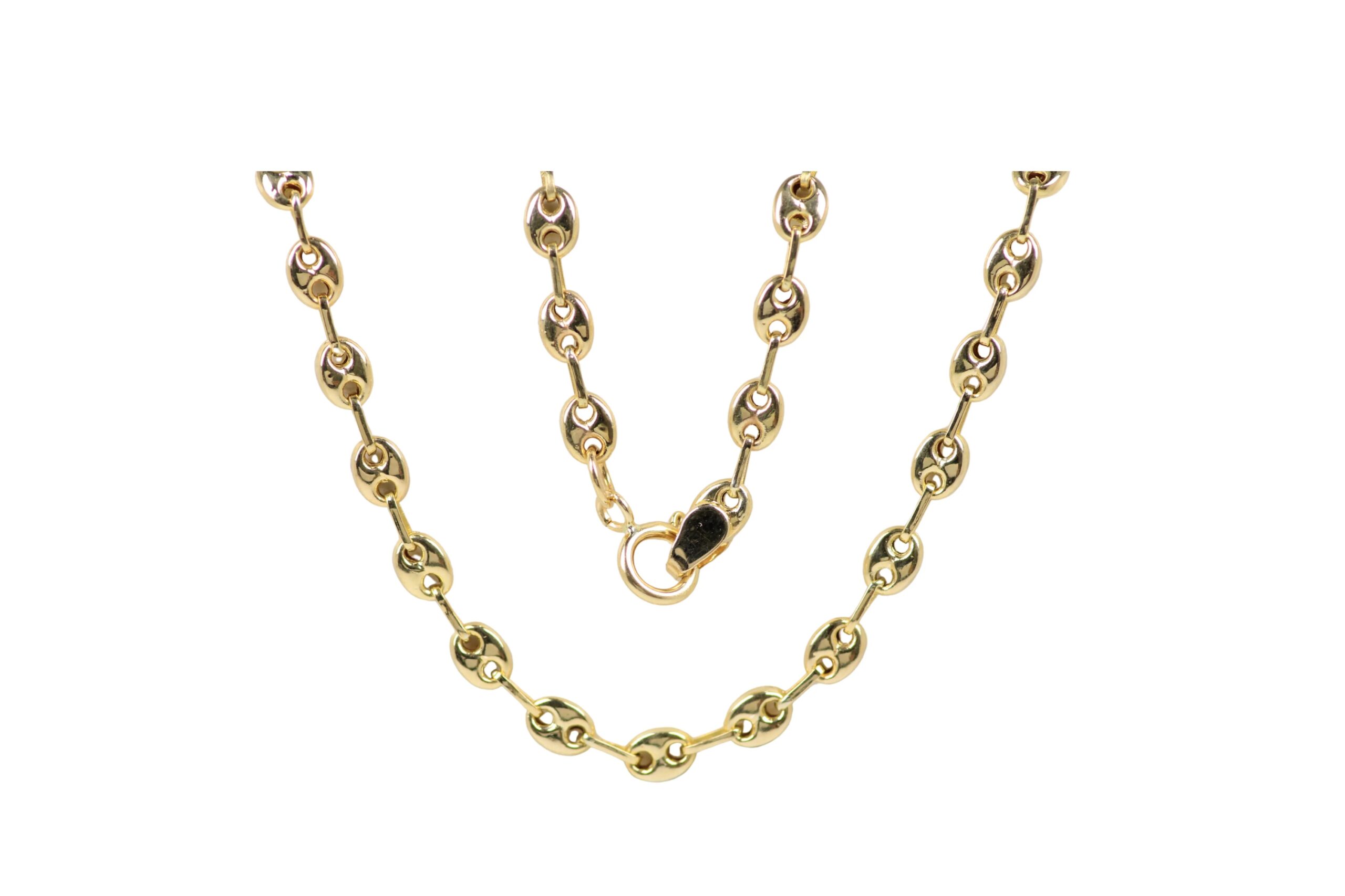 La cadena Gucci de 40 cm de largo y 3,1 mm de grosor, con 1,4 mm en los eslabones, elaborada en oro nacional de 18 kilates, ofrece un equilibrio perfecto entre elegancia y durabilidad. Su diseño clásico y su brillo refinado la convierten en una joya ideal para regalar o para llevar todos los días con estilo.