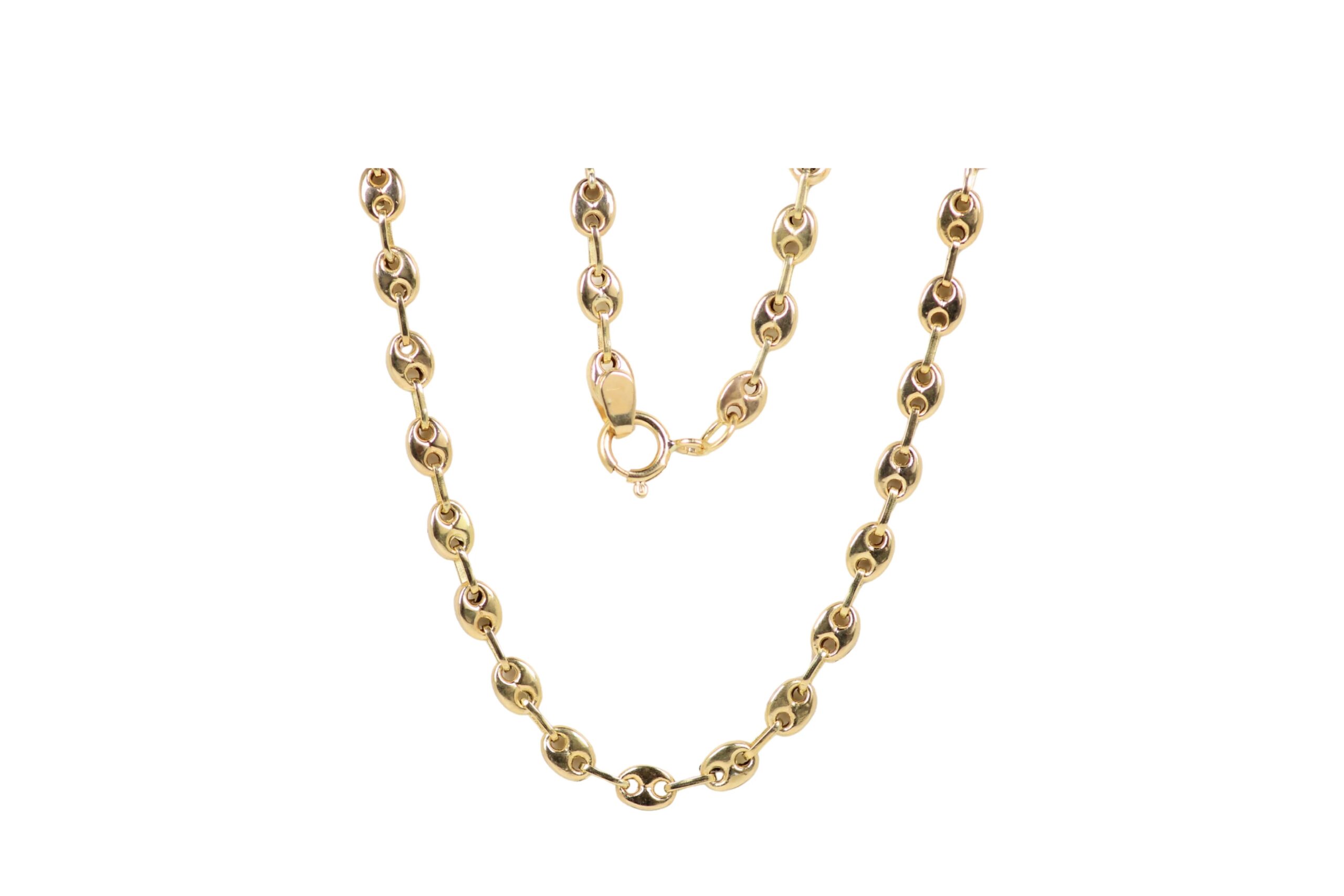 La cadena Gucci de 45 cm de largo y 3,1 mm de grosor, con 1,4 mm en los eslabones, elaborada en oro nacional de 18 kilates, destaca por su diseño sólido y atemporal. Una pieza que combina lujo y sencillez, perfecta para regalar o para quienes disfrutan llevar joyas auténticas con identidad colombiana.