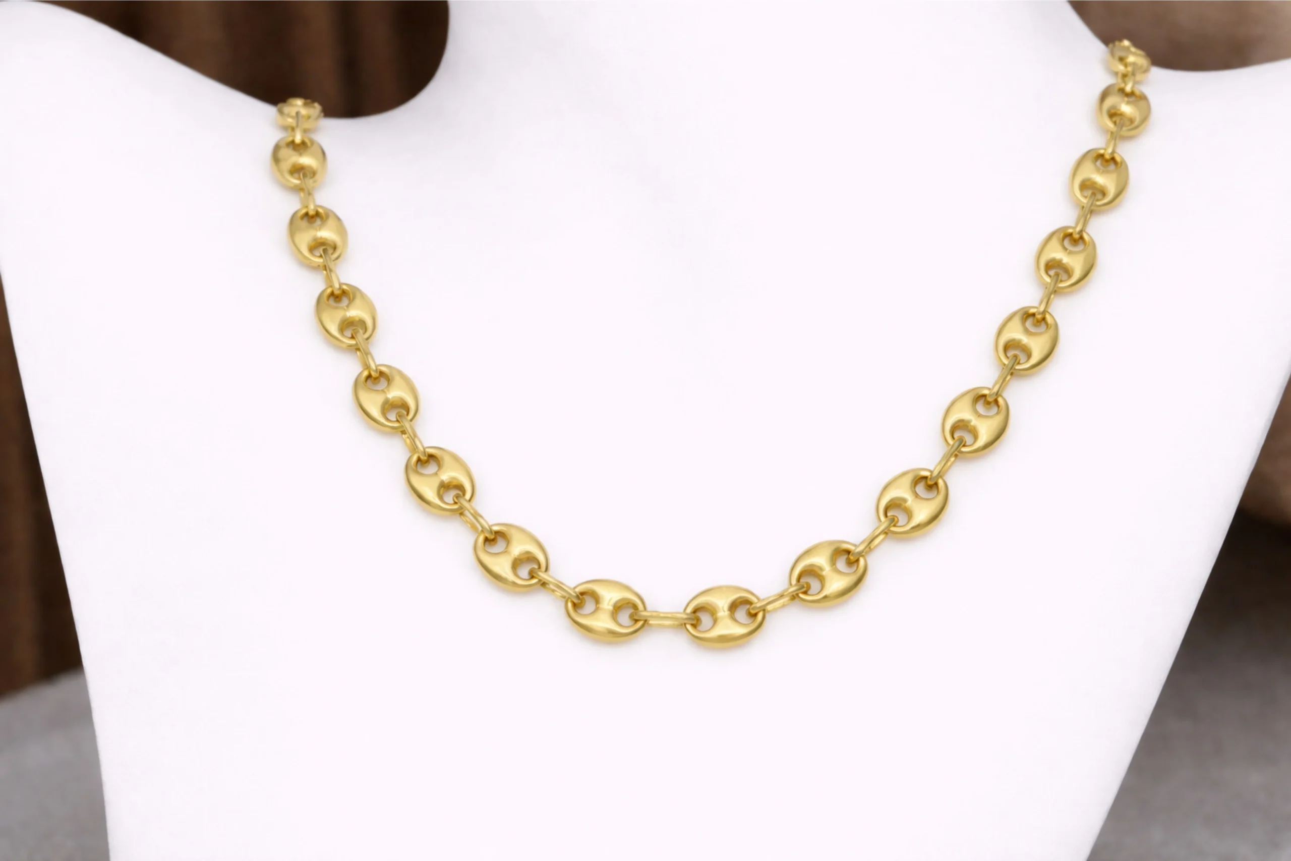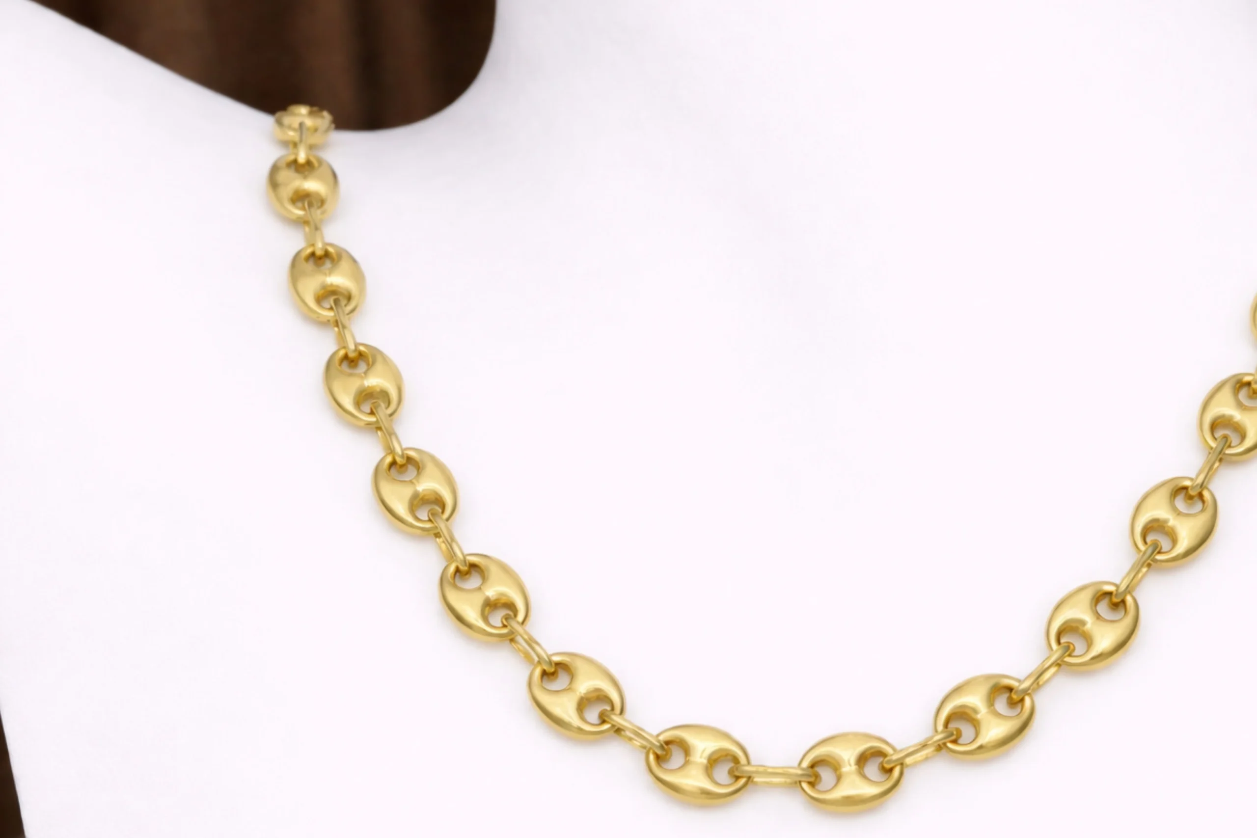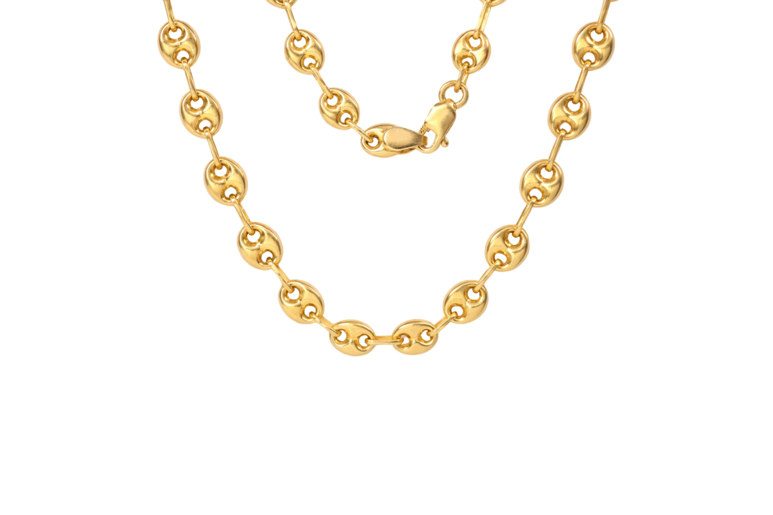 Una joya impactante con mayor protagonismo visual. La Cadena Gucci en oro de 18 kilates de 50cm con 4,1mm y 1,6mm destaca por su diseño robusto y acabado pulido que realza su brillo intenso. Elaborada cuidadosamente, ofrece estructura firme y caída elegante. Ideal para lucir como pieza principal, es una cadena pensada para perdurar con distinción.