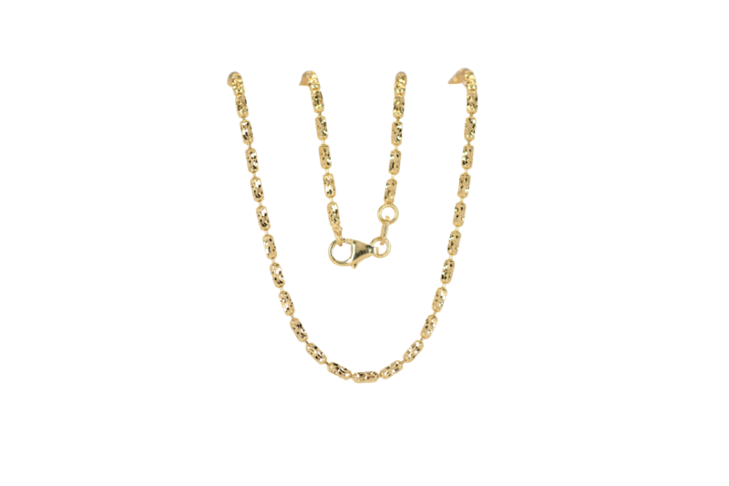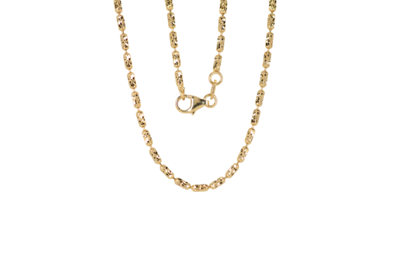 La Cadena Militar Diamantada de 50 cm y 1,5 mm combina solidez con un acabado brillante que resalta su estructura firme. Hecha en oro de 18 KILATES, es una elección clásica para quienes aprecian las joyas robustas y duraderas. Una excelente opción como regalo atemporal.