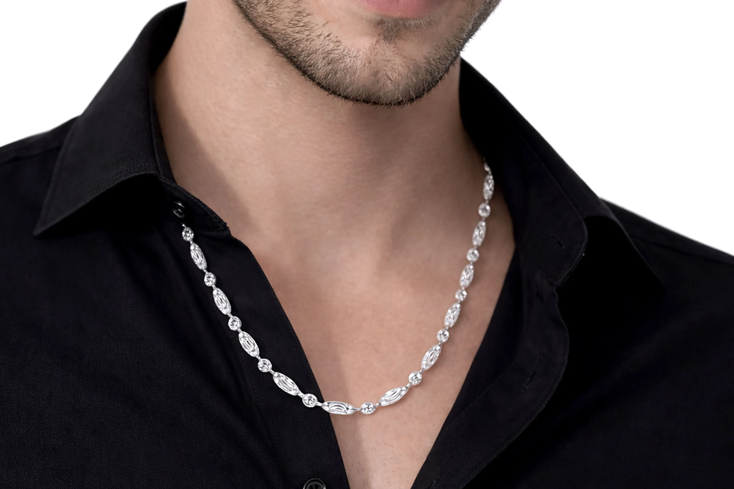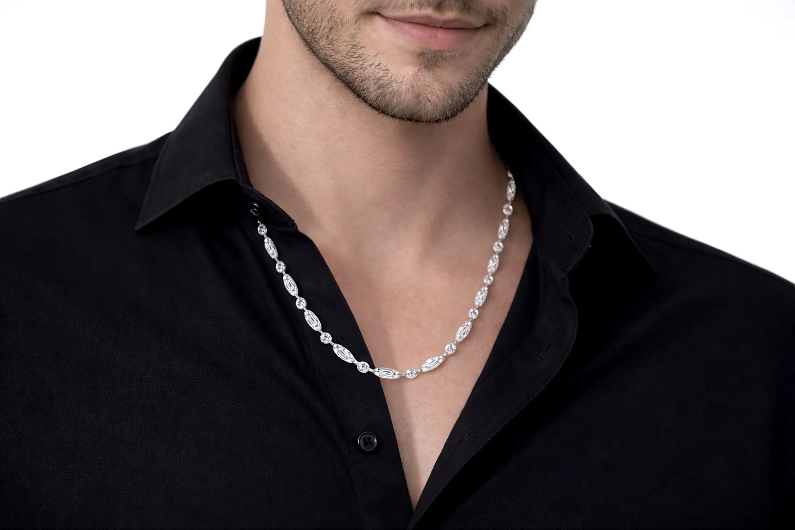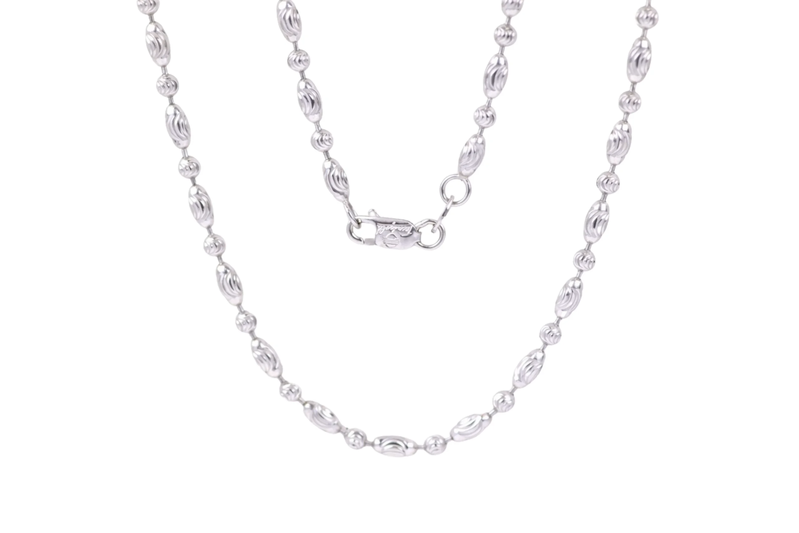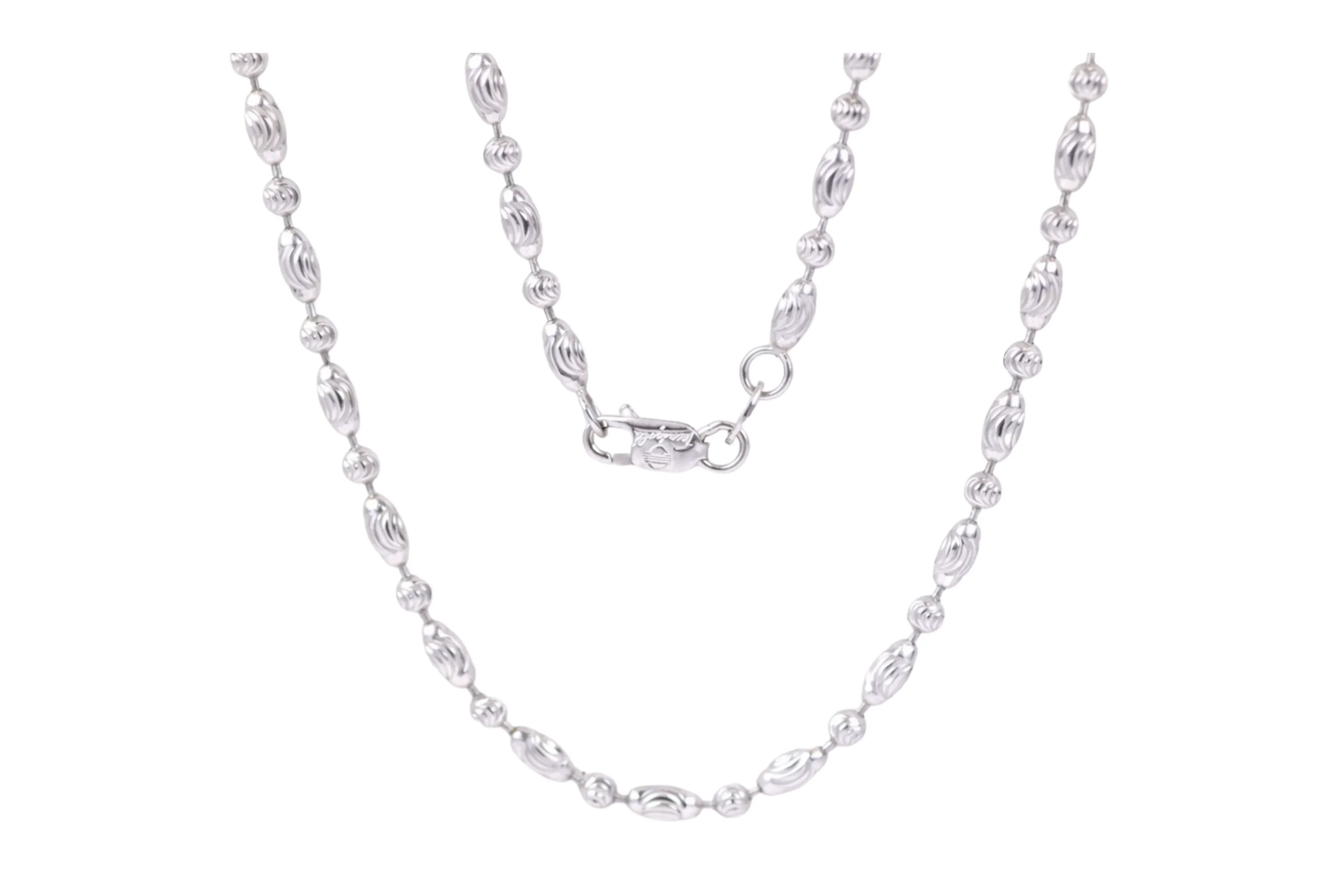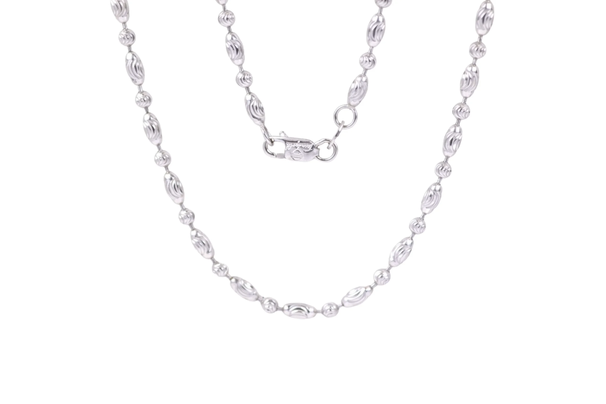 Una joya sofisticada con contraste contemporáneo. La Cadena Militar Oro Blanco Diamantado en oro de 18 kilates de 60cm y 2,6mm destaca por su acabado claro y textura luminosa que realza su diseño elegante. Elaborada con precisión artesanal, ofrece resistencia y brillo distintivo. Ideal para quienes buscan una pieza moderna y refinada, es una cadena pensada para perdurar.