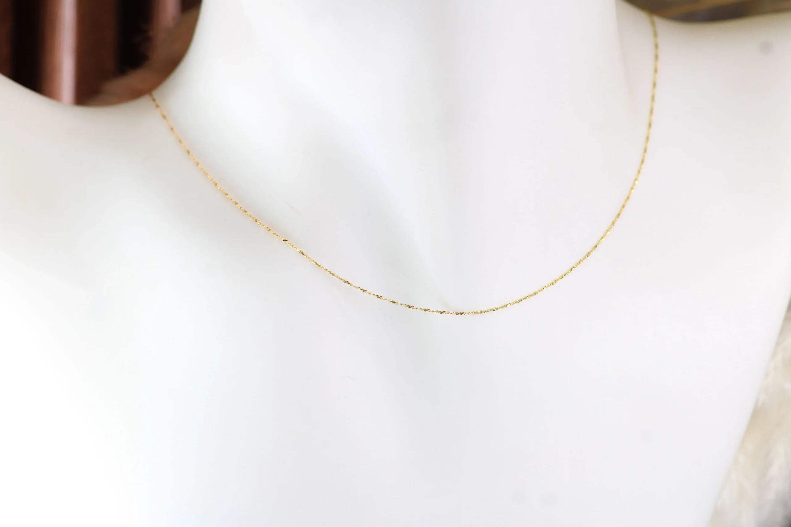 Una joya de diseño dinámico y refinado. La Cadena Singapur Guaya en oro de 18 kilates de 40cm y 0,5mm destaca por su torsión delicada y brillo llamativo.