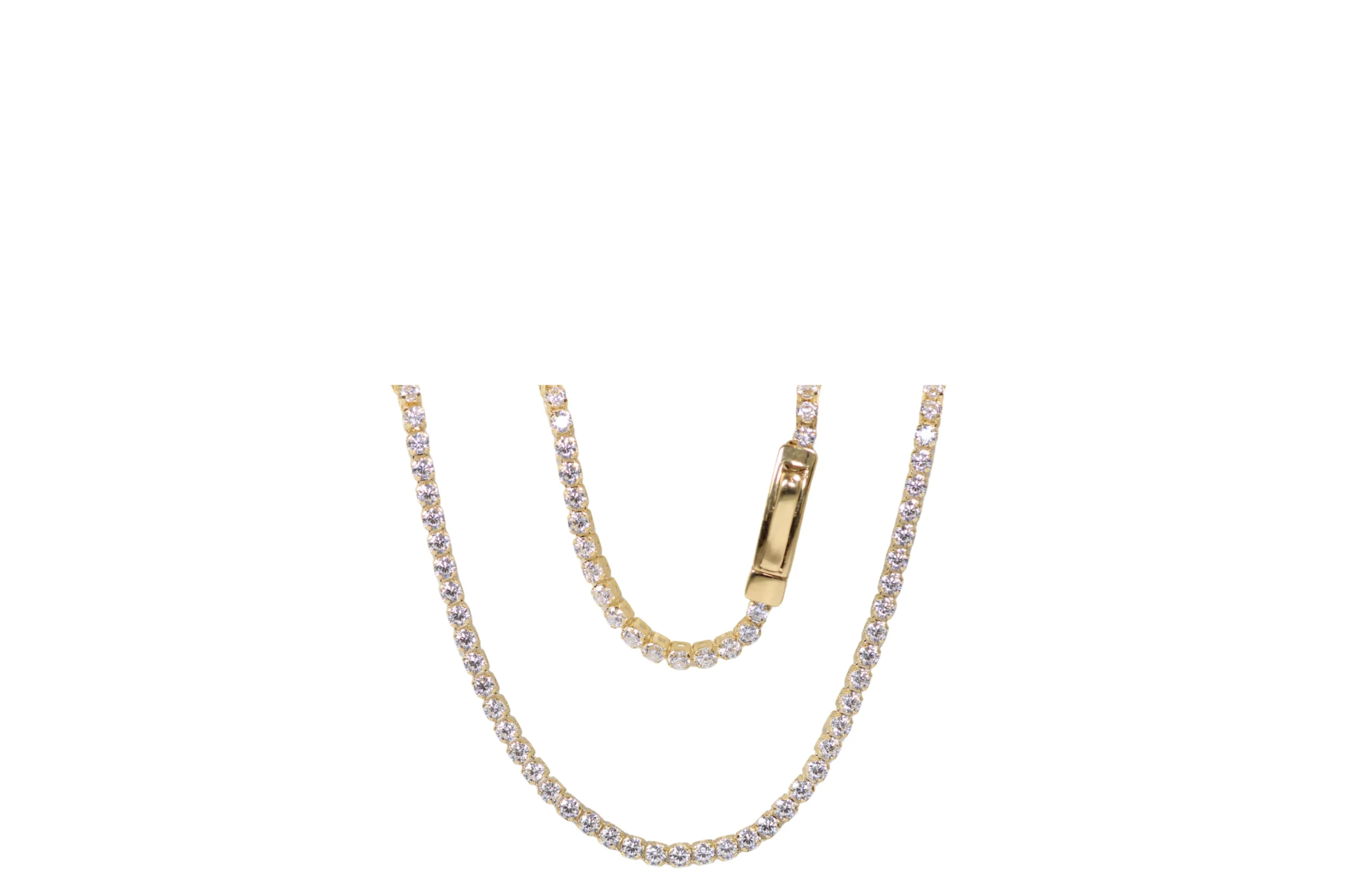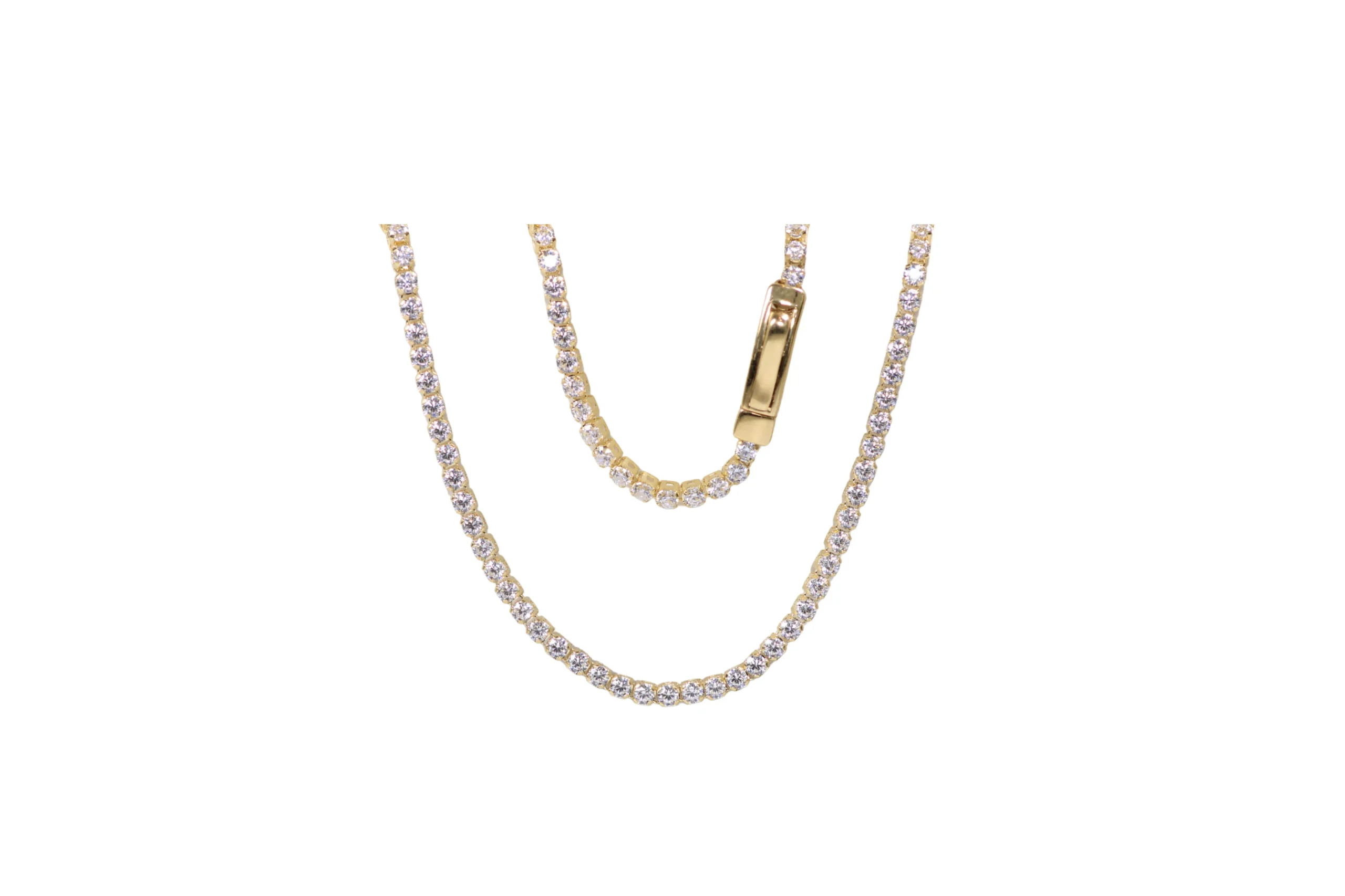 Cadena Tennis Circones Blancos 40cm-11,7mm El diseño clásico de esta cadena la hace perfecta para quienes valoran la elegancia atemporal. Cada circón blanco brilla con intensidad, aportando un toque de lujo a cualquier ocasión. Ideal para regalar o para complementar tu estilo diario con una joya que combina sutileza, calidad y distinción en cada detalle.