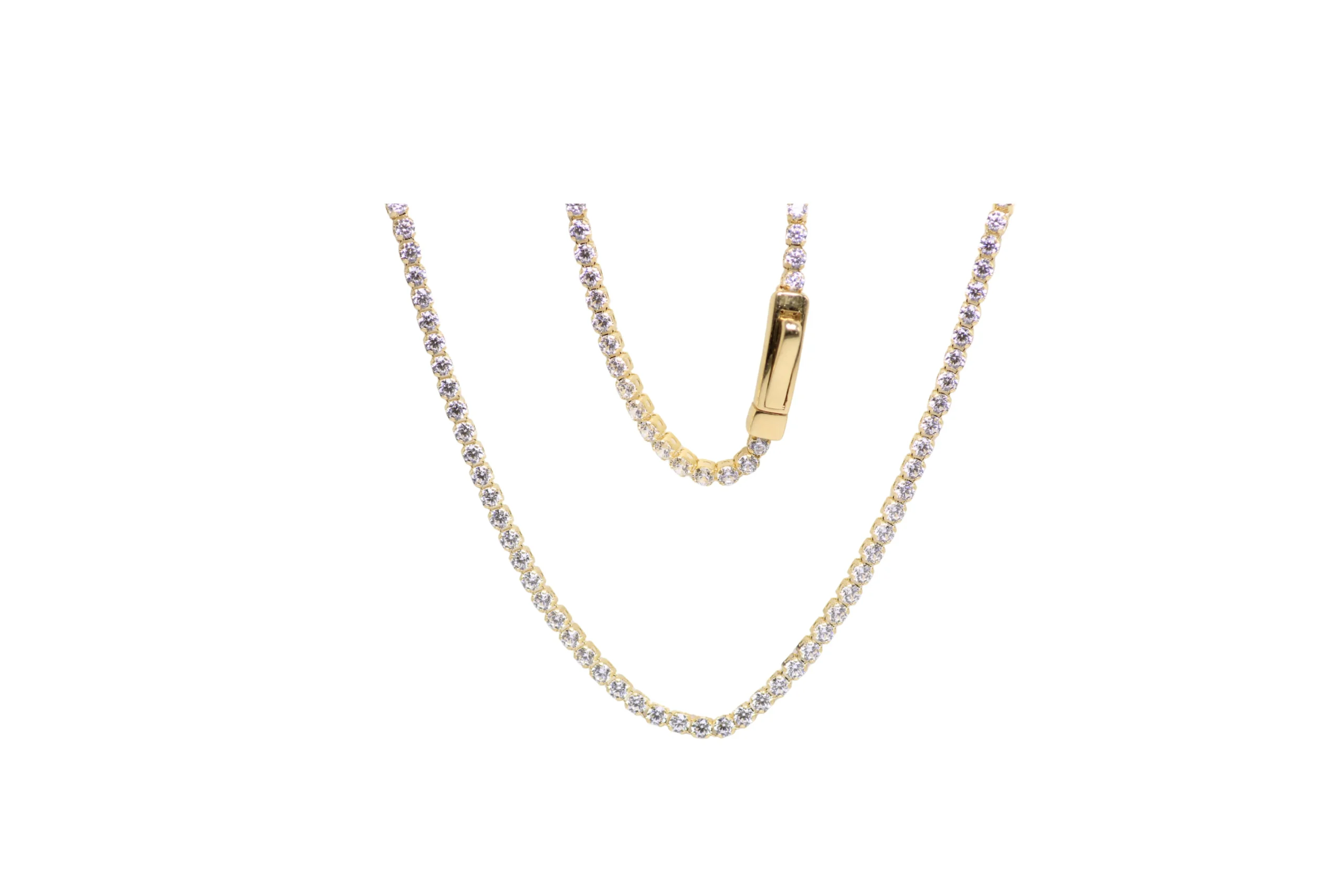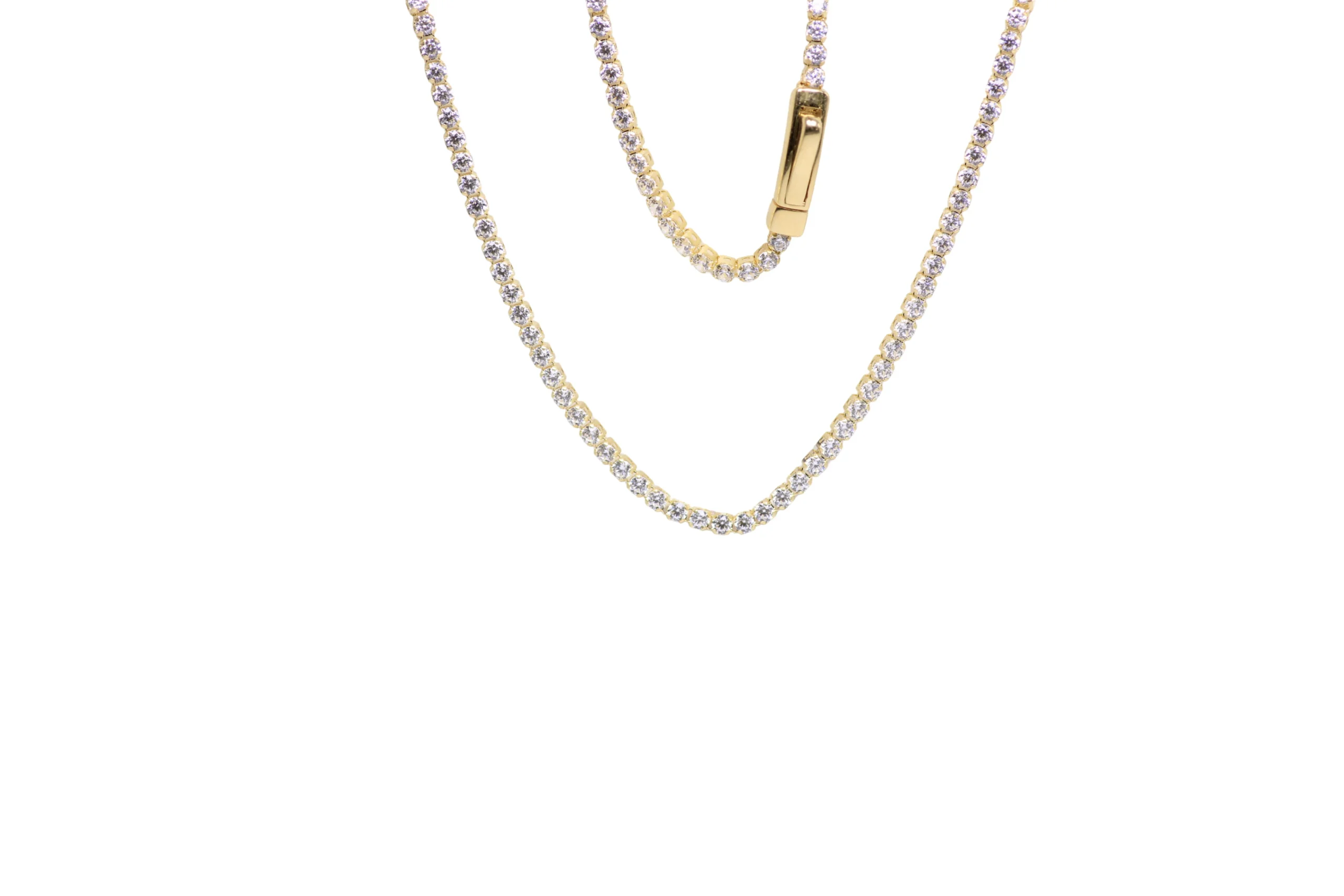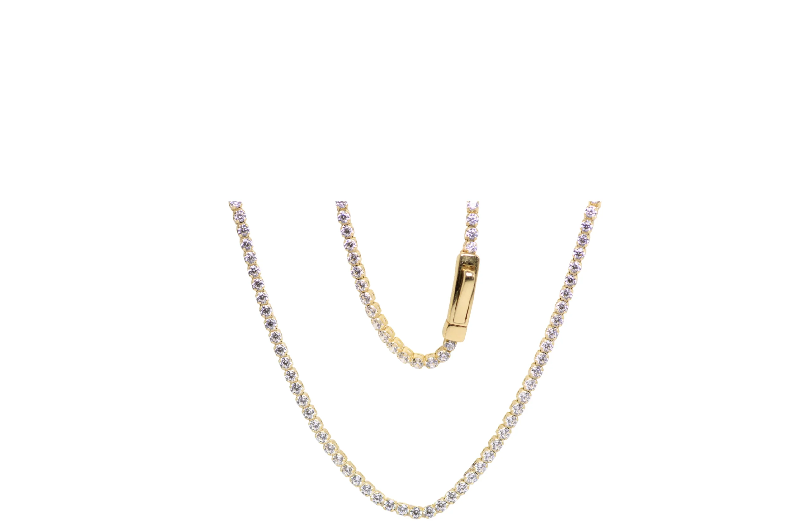 Cadena Tennis Circones Blancos 45cm-11,7mm Con un diseño refinado y moderno, esta cadena realza la belleza del brillo de los circones blancos. Su longitud es ideal para lucirla sola o en conjunto con otras piezas. Perfecta para regalar o añadir a tu colección, simboliza elegancia y versatilidad, acompañando tus momentos más especiales con un toque de luz y encanto.