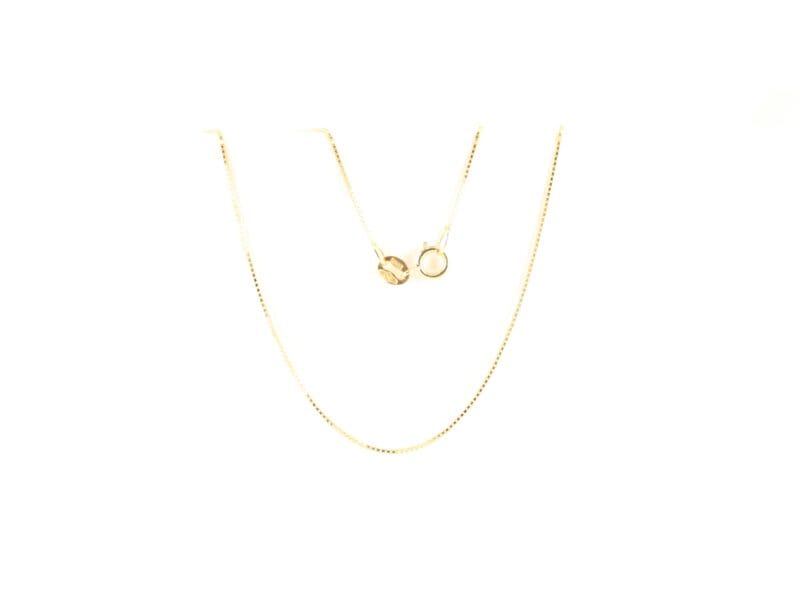 La Cadena Veneciana en oro de 18k de 40 cm y 0,6 mm es una joya delicada y sofisticada que destaca por su diseño minimalista y elegante. Los pequeños eslabones cuadrados se entrelazan con precisión,creando una estructura uniforme que brilla con cada movimiento. Ideal para quienes buscan un accesorio discreto,esta cadena es perfecta para llevar sola o con un dije pequeño,adaptándose a cualquier estilo. Su tamaño corto la hace ideal para lucir cerca del cuello,aportando un toque de feminidad y refinamiento. La calidad del oro italiano garantiza su durabilidad y resistencia,convirtiéndola en una pieza atemporal que complementará cualquier colección de joyería con lujo y distinción.