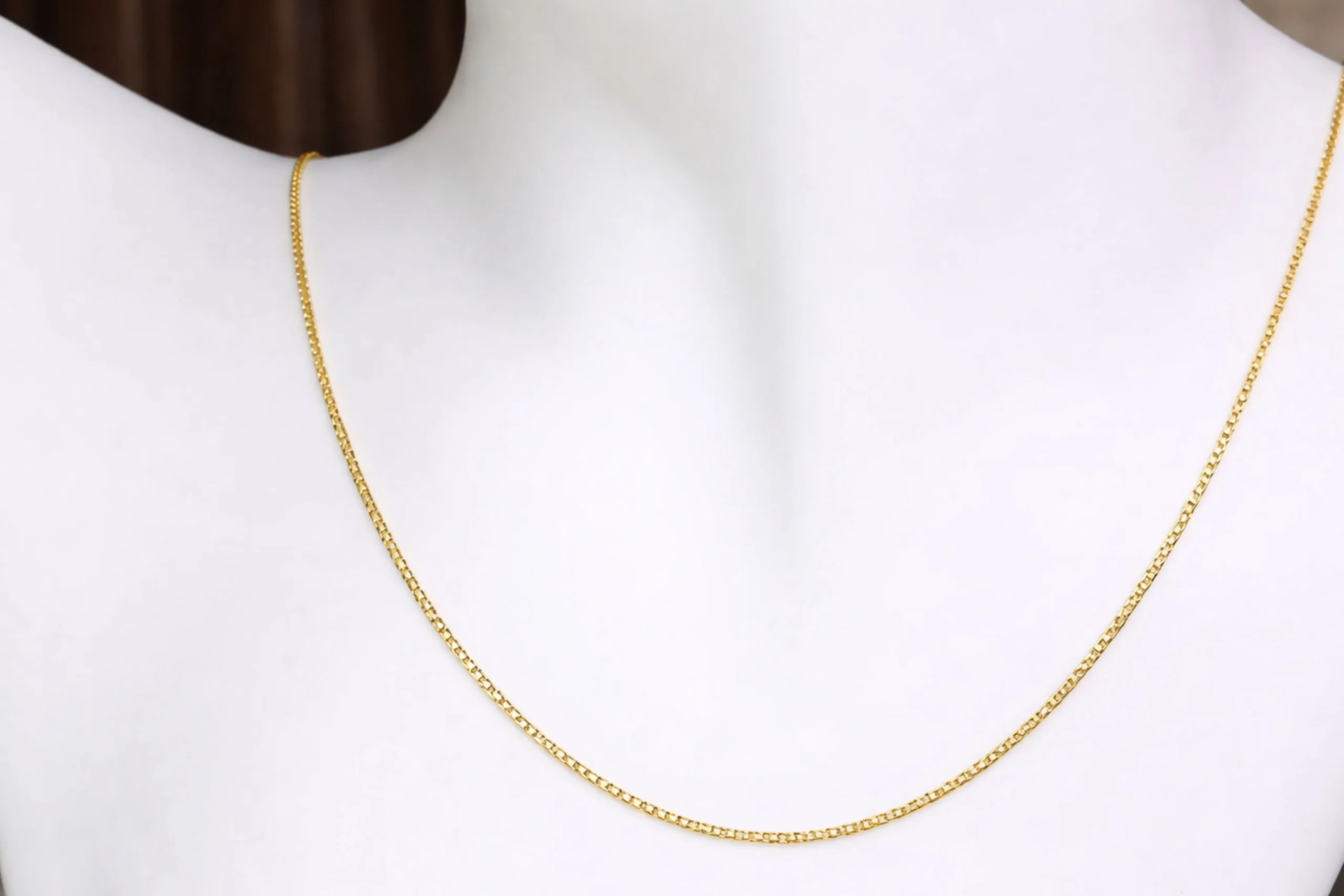 Una joya equilibrada y versátil con estilo refinado. La Cadena Veneciana en oro de 18 kilates de 45cm y 0,8mm destaca por su diseño limpio y proporción ideal, perfecta para acompañar distintos looks. Elaborada con acabado pulido, ofrece brillo sutil, ligereza y resistencia. Ideal para llevar sola o combinar con dijes, es una cadena pensada para perdurar con distinción.
