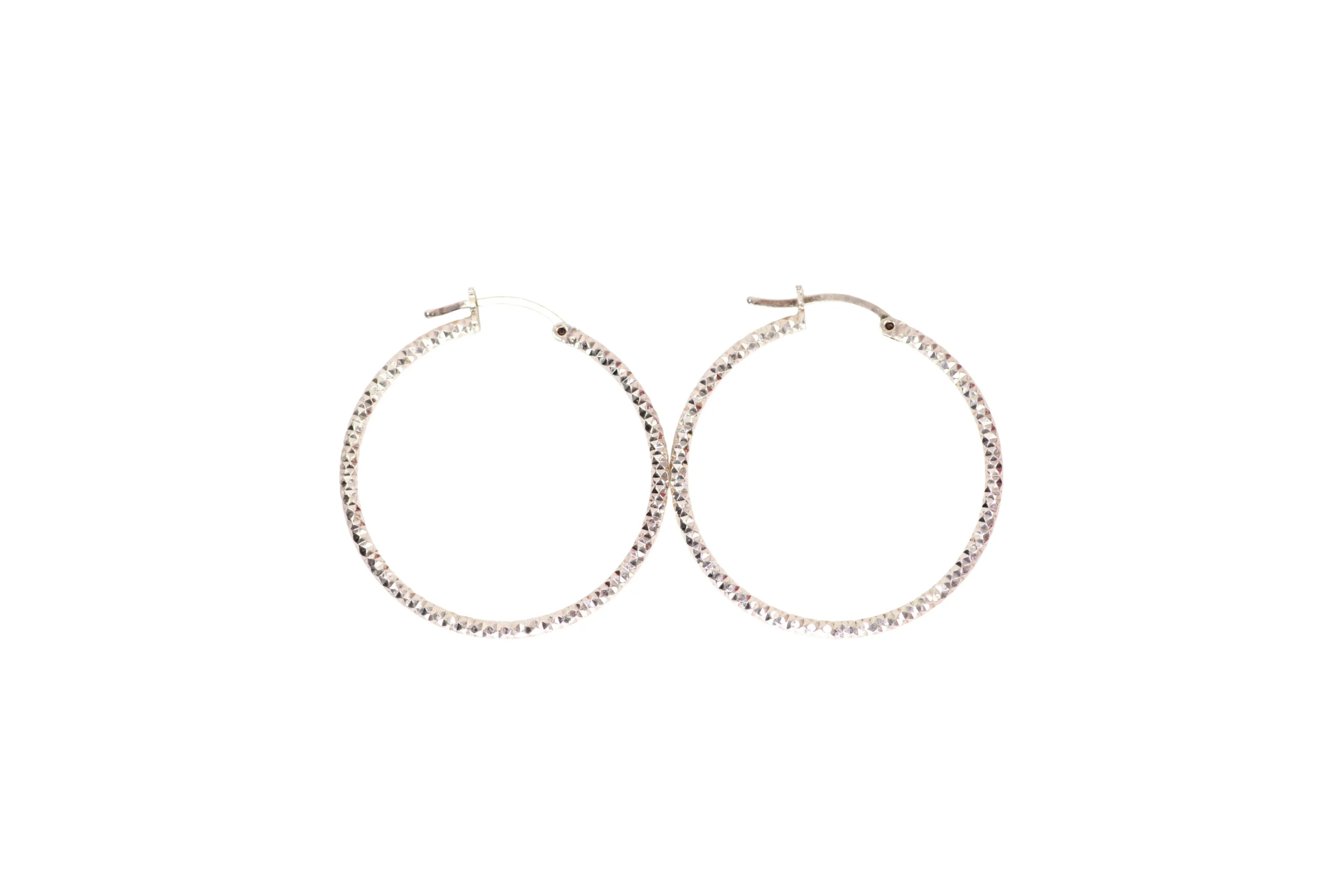 La candonga plata diamantada 35mm presenta un acabado facetado que refleja la luz con un brillo encantador. Su diseño sofisticado y su tamaño equilibrado la convierten en un accesorio versátil que realza tanto estilos casuales como formales. Es ideal para regalar a quienes disfrutan detalles elegantes y atemporales.