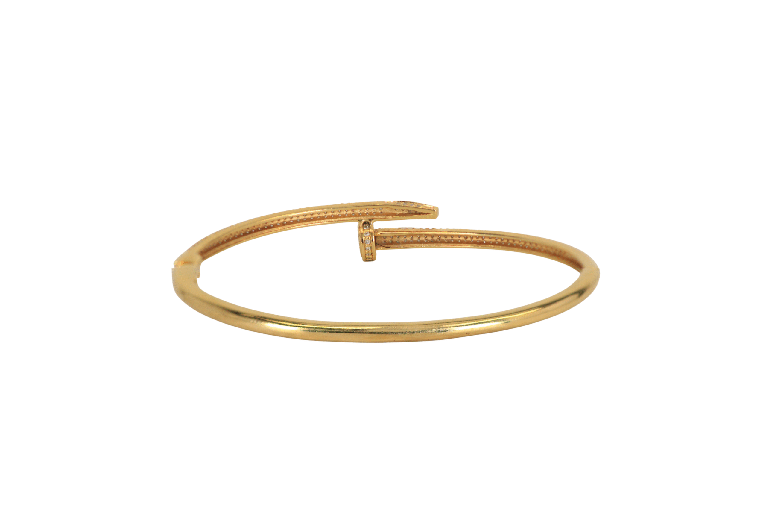 El Aro Cartier Clavo Diamantes,con un diámetro de 60mm y 0,4mm de grosor,combina el diseño innovador del clavo con el lujo de los diamantes. Esta pieza,en oro de 18 kilates,expresa fuerza y belleza en su forma más pura. Ideal para quienes desean destacar con una joya que captura la esencia del lujo moderno.