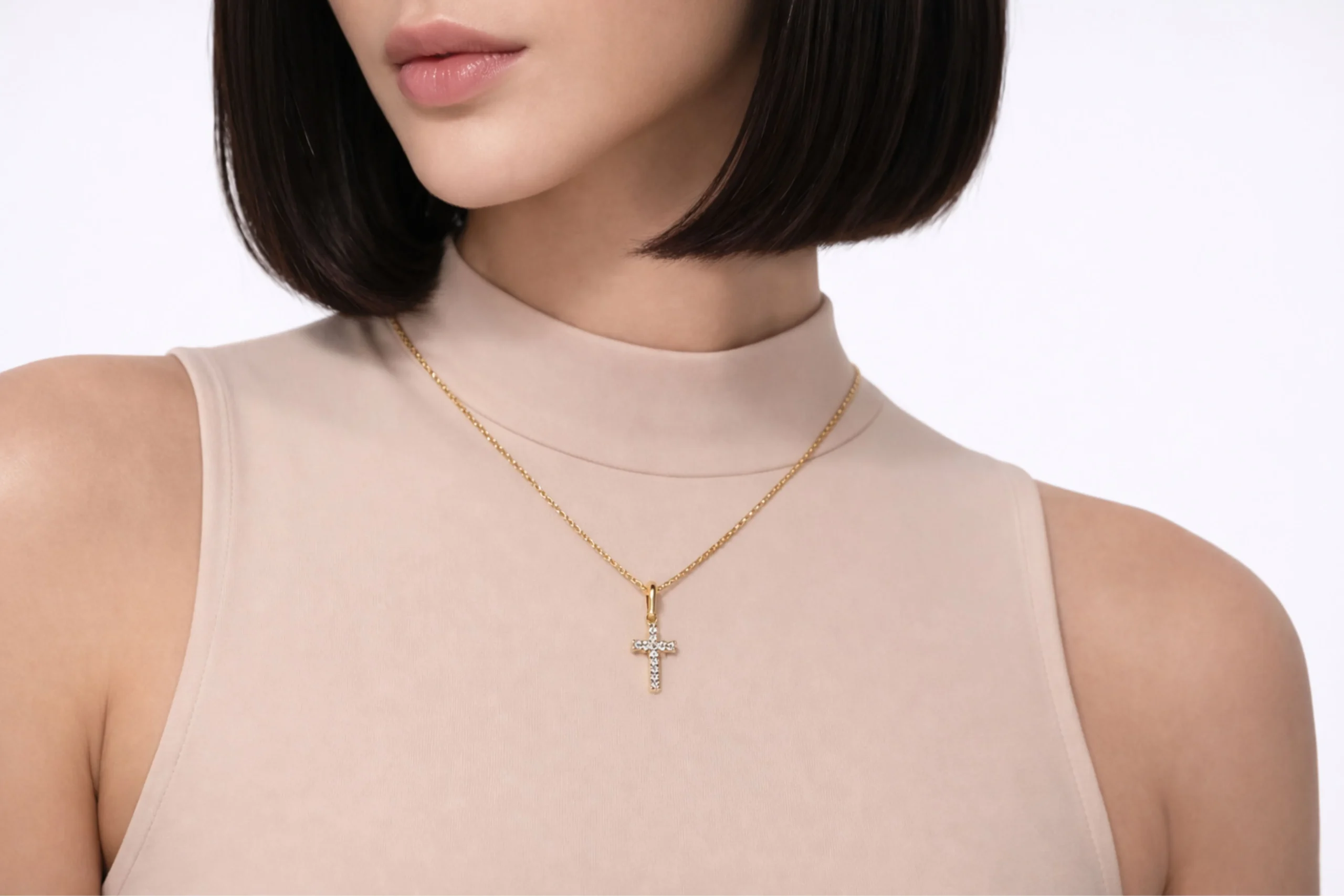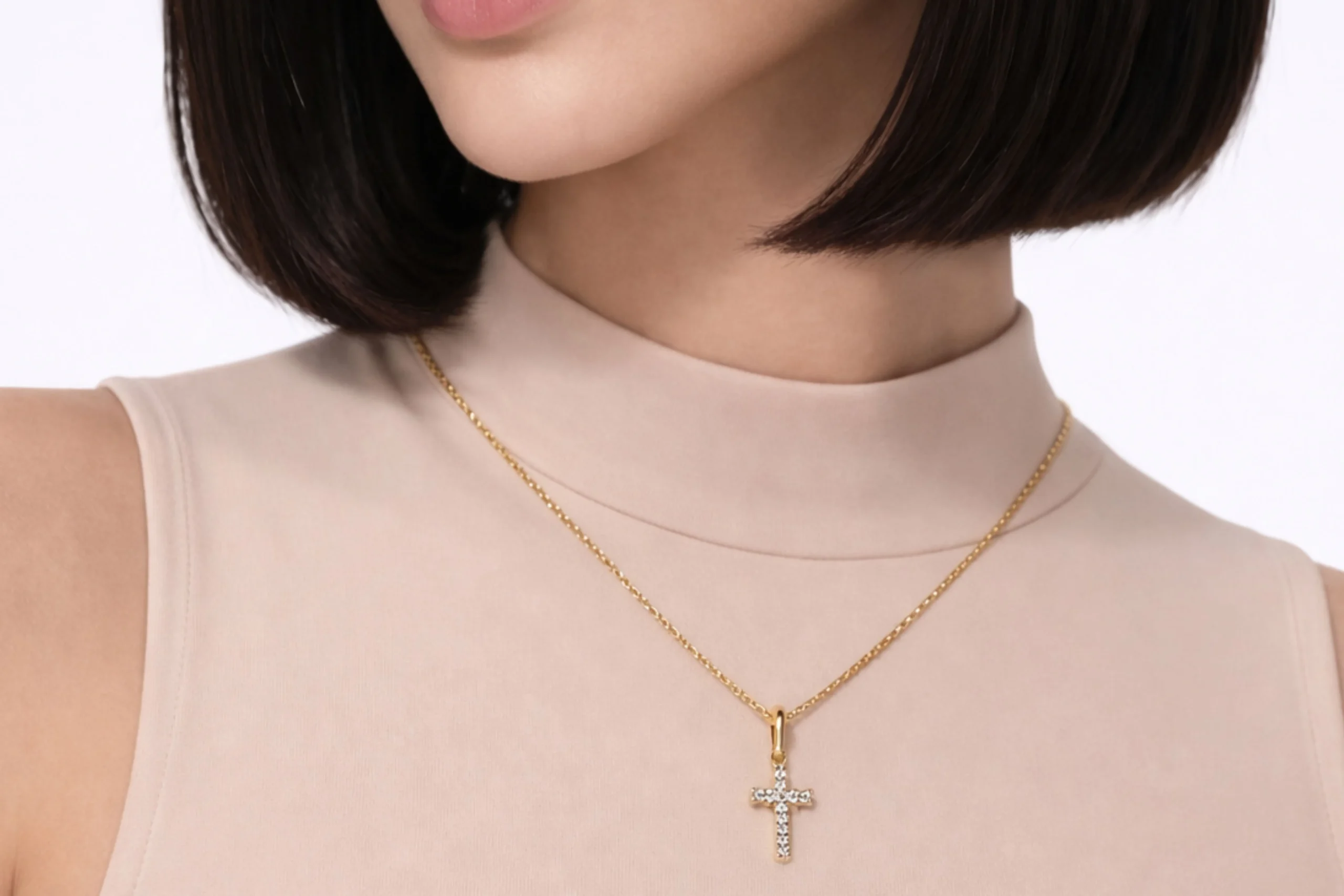 Una joya clásica que transmite pureza y elegancia atemporal. El Dije Cruz Circones Blanco en oro de 18 kilates de 15,9mm por 8,2mm destaca por su diseño limpio y luminoso, donde los circones blancos aportan brillo sutil y refinado. Elaborado cuidadosamente, ofrece engaste seguro y acabado impecable. Perfecto para portar como símbolo de fe, es un dije pensado para perdurar con elegancia.