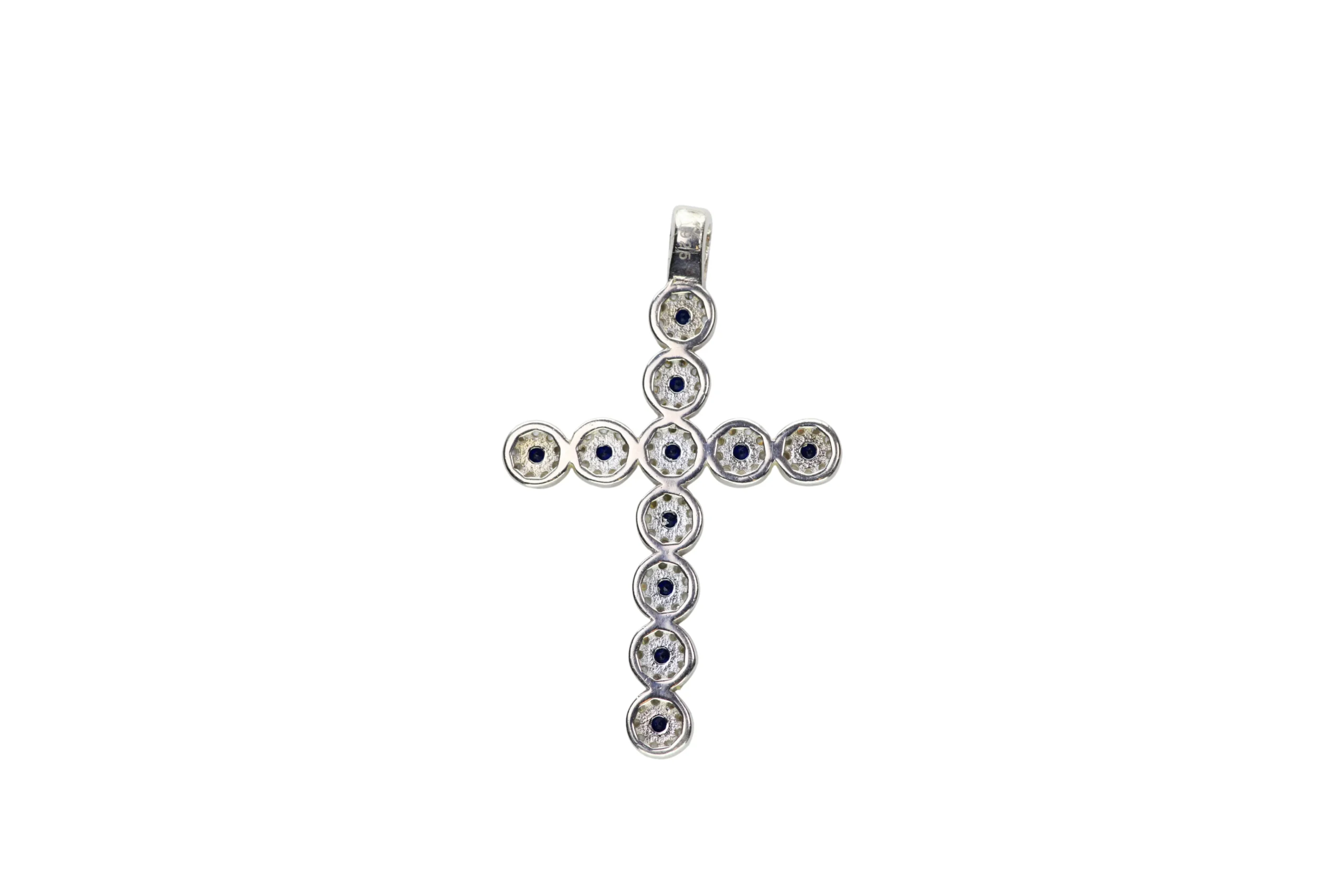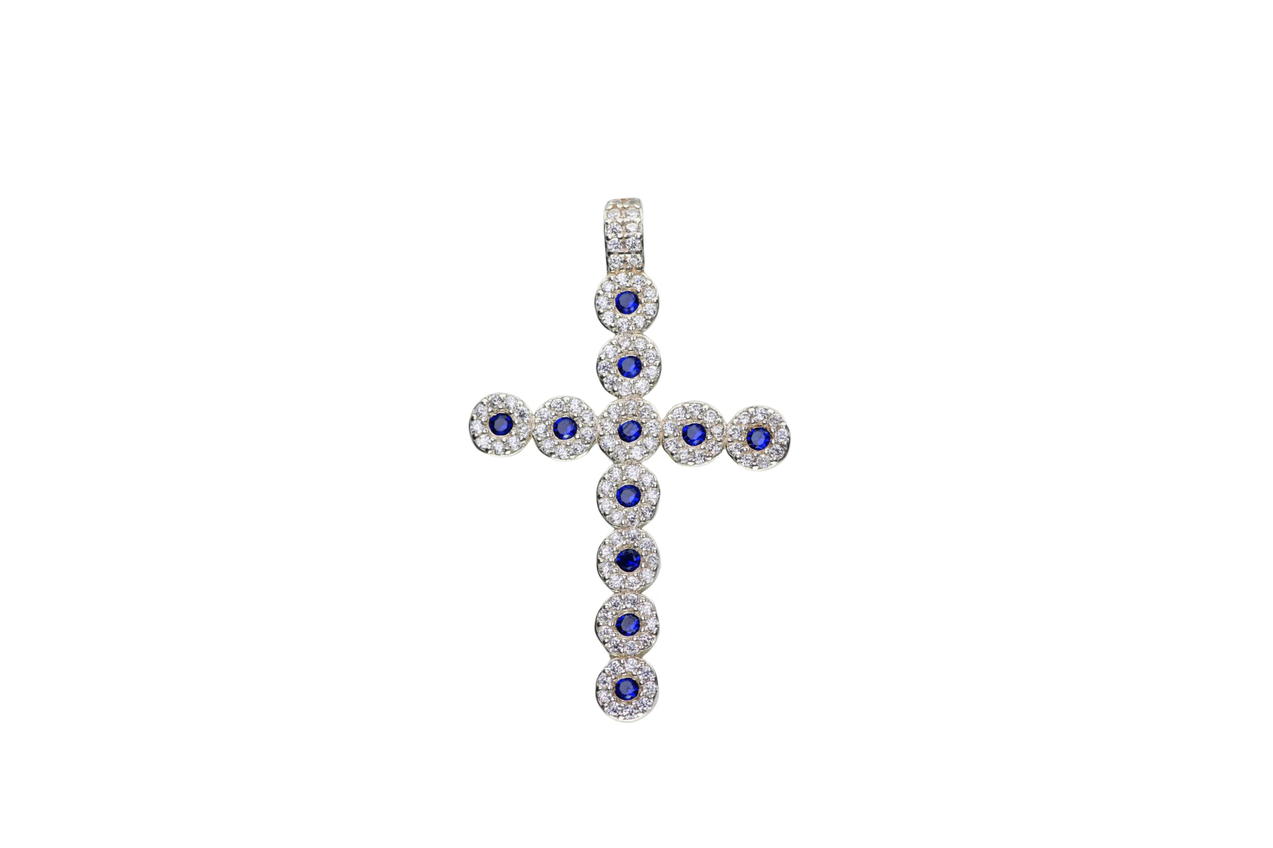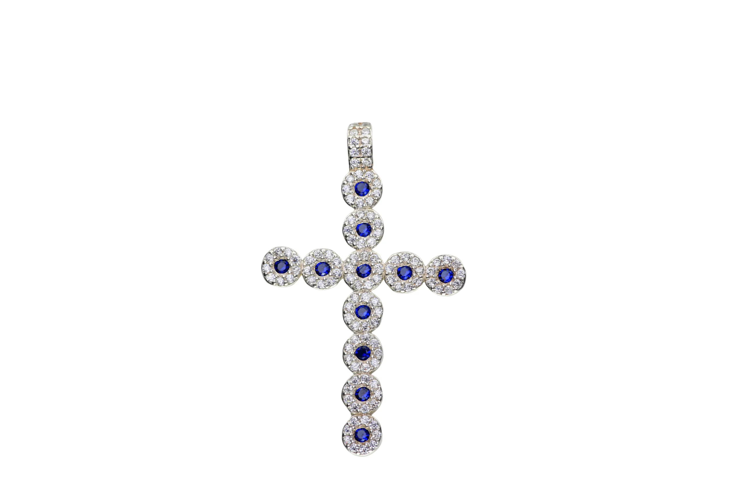 Dije Cruz Circones Blanco Y Azul Plata 36,3mm-22,3mm