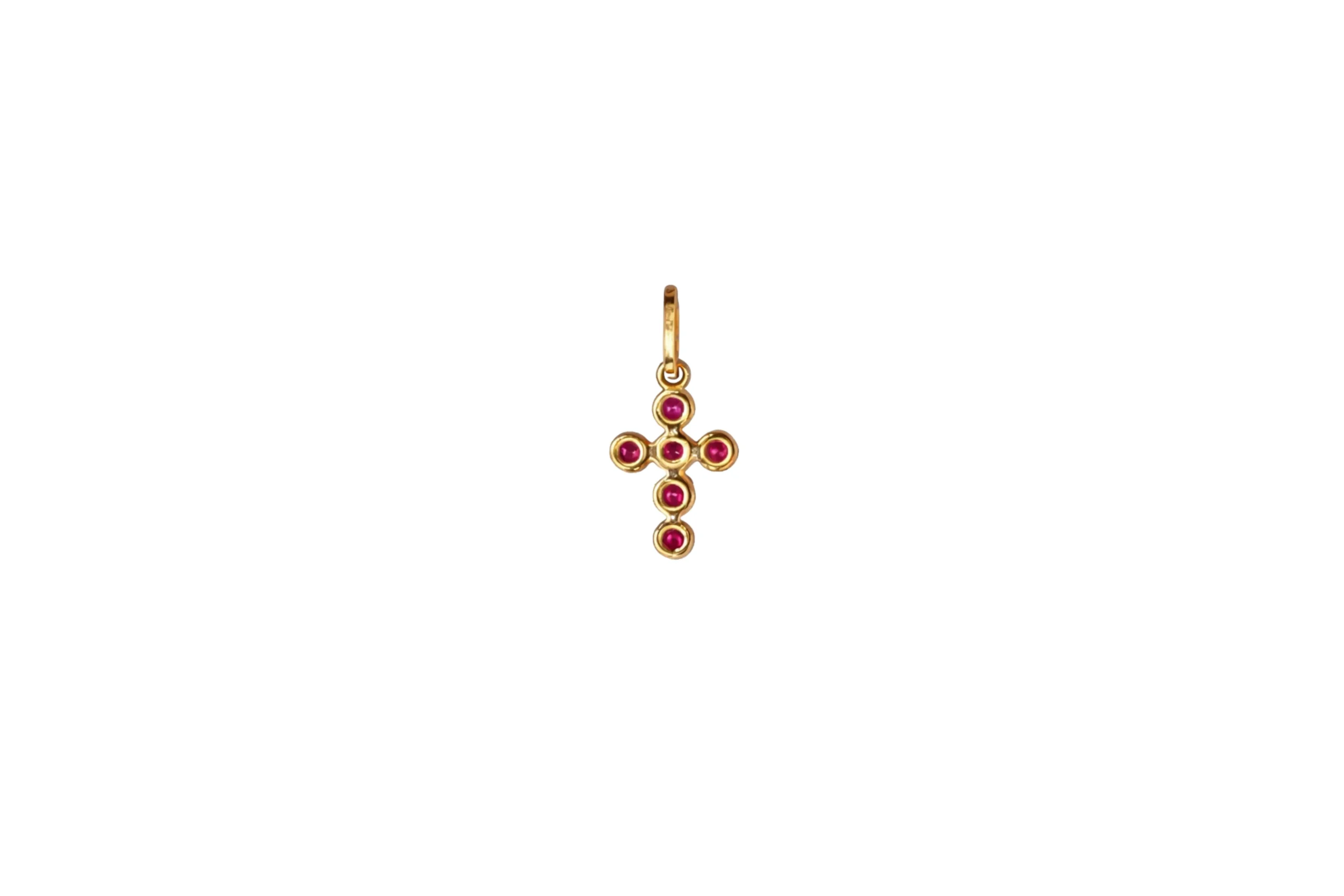 Dije Cruz Circones Fucsia Oro 18K 13,9mm-8,7mm