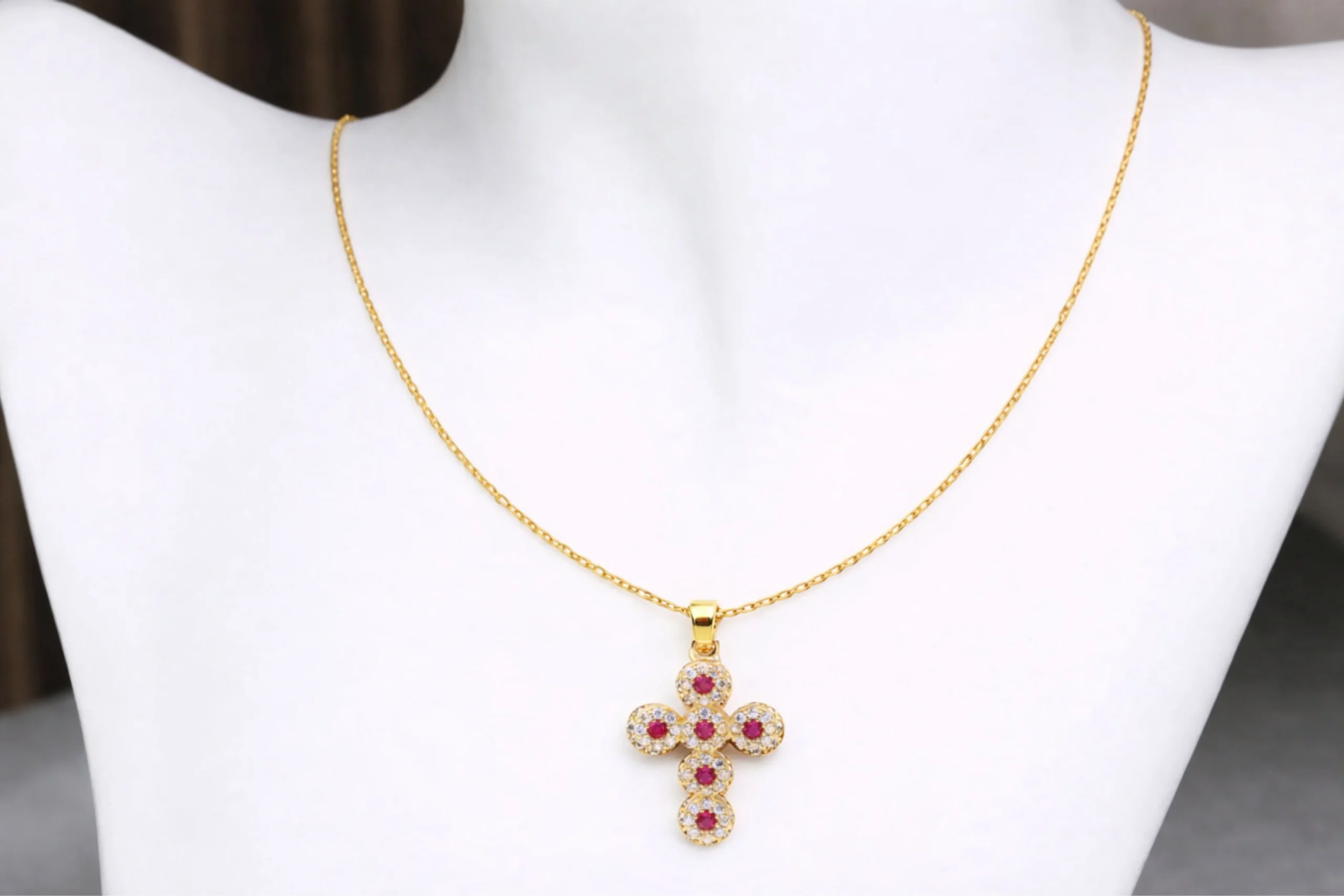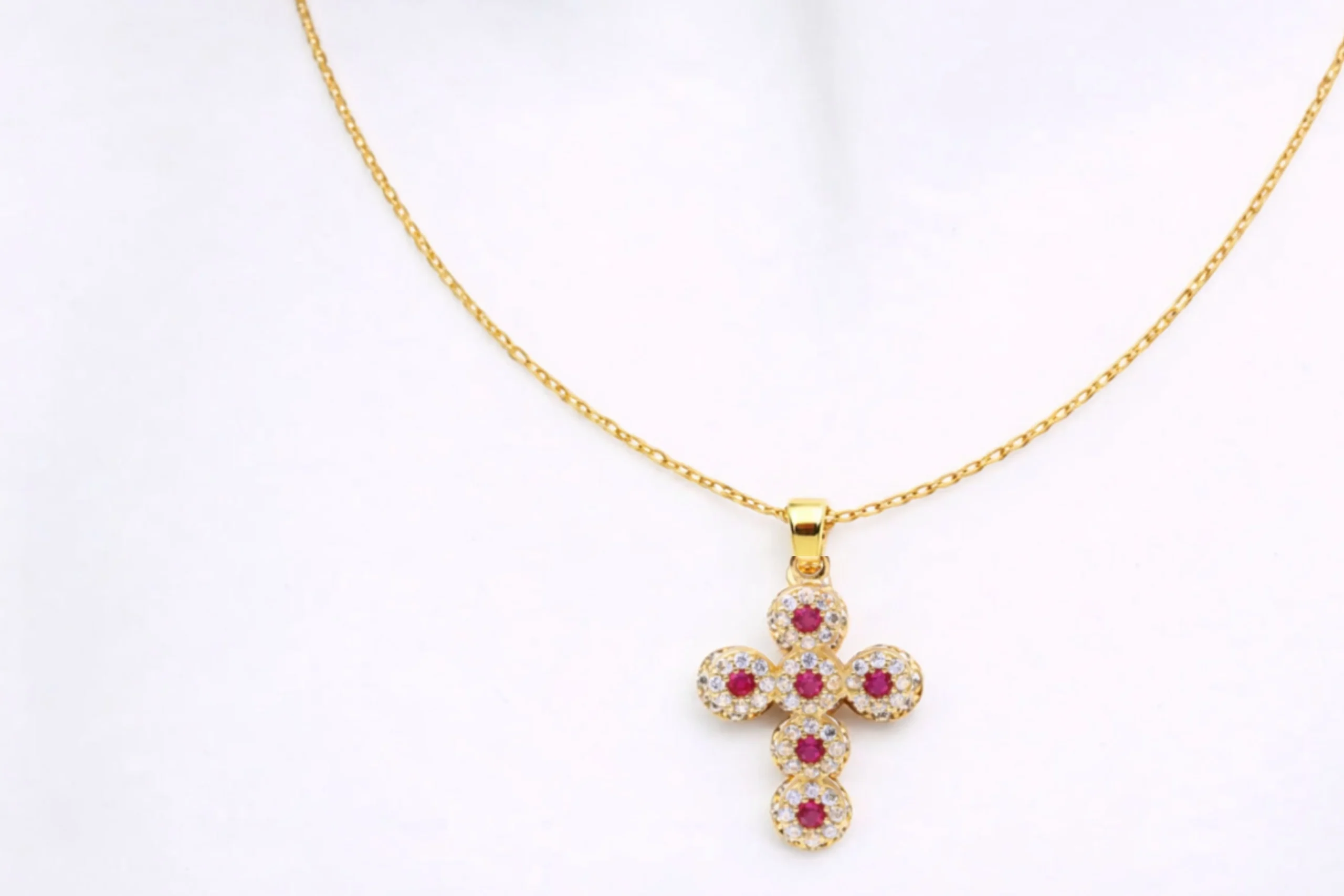 Una joya vibrante que expresa fe con personalidad. El Dije Cruz Circones Fucsia en oro de 18 kilates de 23,4mm por 15,2mm y 2,4mm destaca por su diseño llamativo y elegante, creado para quienes buscan un símbolo espiritual con color y carácter. Elaborado cuidadosamente, ofrece brillo intenso y gran presencia. Ideal para regalar o lucir como pieza protagonista, es un dije pensado para perdurar.
