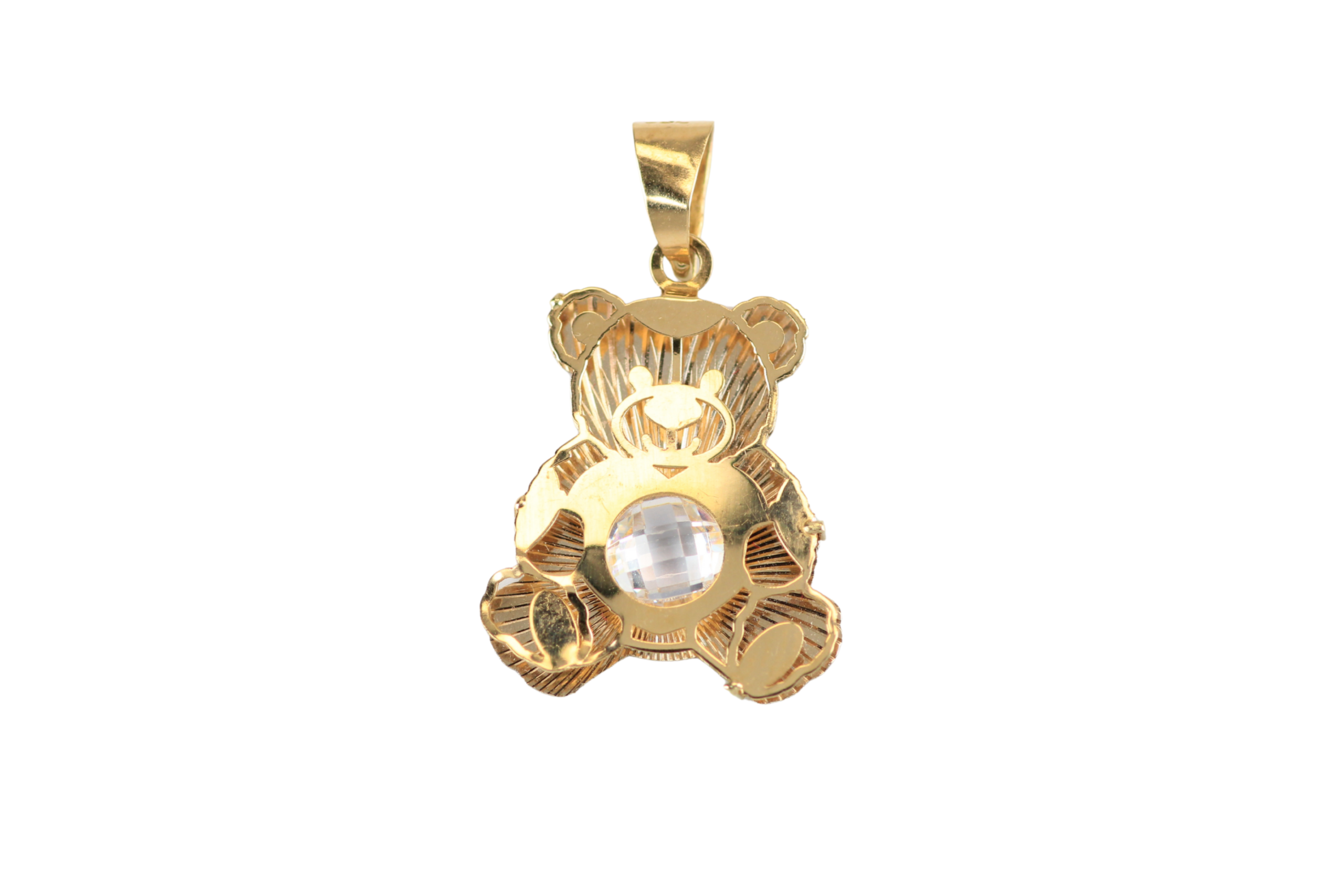Dije Oso Moschino Diamantado Circon 2,18mm-16mm 3mm,un diseño adorable y brillante,en forma de oso Moschino,adornado con circones diamantados que agregan un toque de lujo a la pieza. Este dije de 16mm de largo y 3mm de grosor es perfecto para quienes buscan una joya divertida y única,pero con un toque sofisticado. ¡Hazlo tuyo o regálalo y llena tu estilo de brillo y ternura!