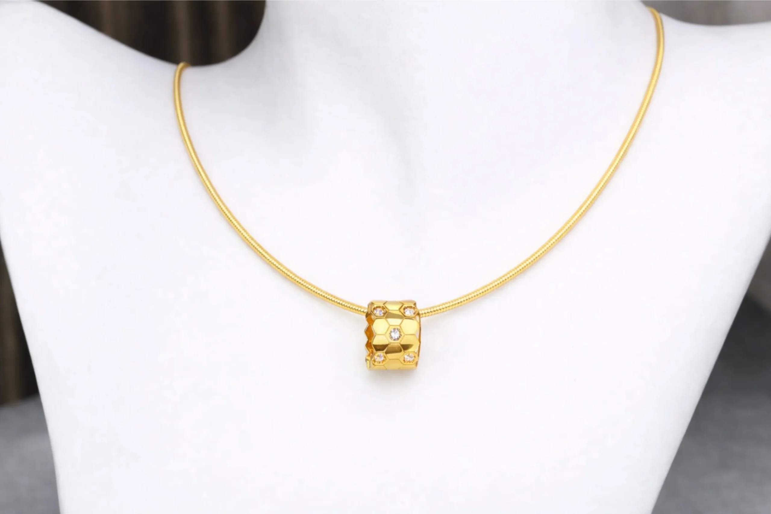 Una joya delicada con diseño geométrico moderno. El Dije Panal Circones en oro de 18 kilates de 10,9mm por 7,8mm y 1,5mm destaca por su estructura elegante y circones brillantes que aportan un toque contemporáneo. Elaborado cuidadosamente, ofrece brillo sutil y gran definición. Ideal para regalar o complementar un look sofisticado, es un dije pensado para perdurar.