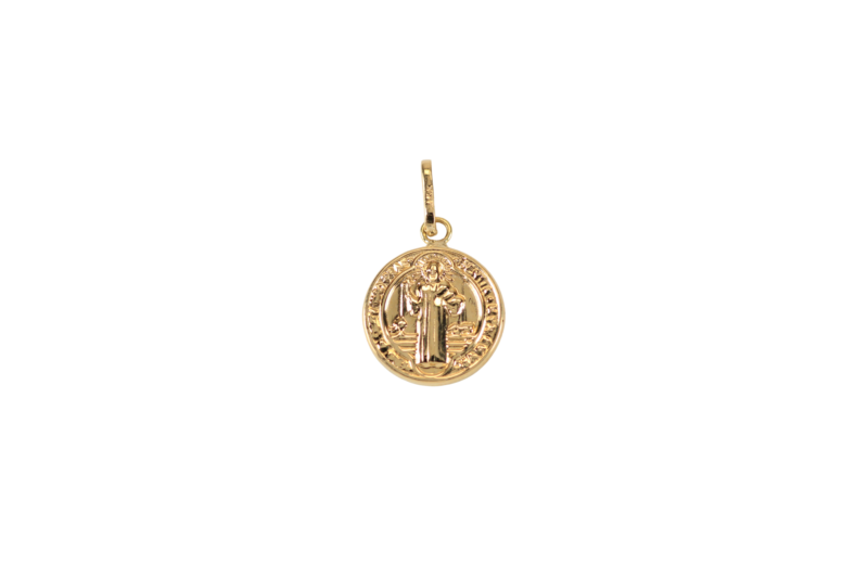 El dije San Benito de 15,4 mm de largo y 12,4 mm de ancho tiene un grosor de 2,2 mm, siendo una pieza llamativa y significativa. Fabricado en oro de 18 kilates, este dije representa la protección y la fe, y su tamaño lo hace ideal para quienes buscan un accesorio con más presencia. Es perfecto para regalar a alguien especial o para usar como una pieza de joyería simbólica que acompañe cualquier conjunto, aportando un toque de espiritualidad y elegancia.