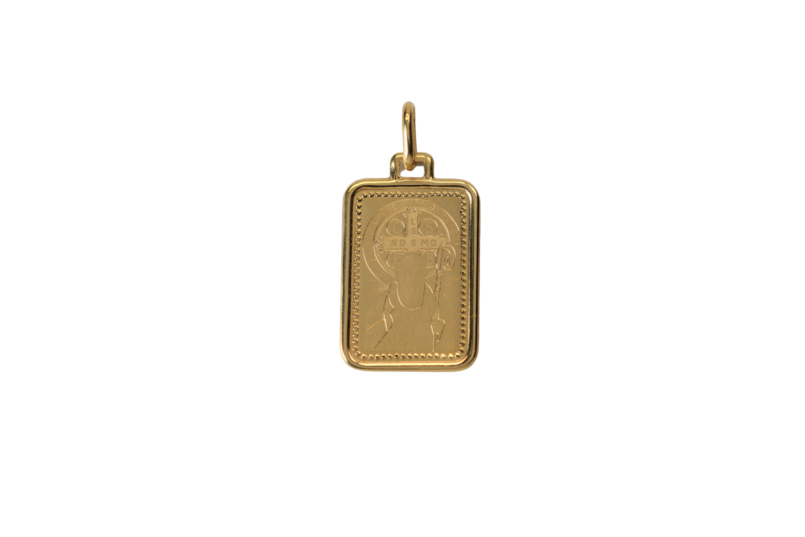 Dije San Benito Placa Láser 20,9mm-13mm 0,5mm,con un diseño clásico que presenta la imagen de San Benito grabada con láser sobre una placa metálica. Su tamaño (20,9mm x 13mm) y delgadez (0,5mm) lo convierten en una joya discreta y significativa. Ideal para quienes buscan un accesorio protector y lleno de espiritualidad. ¡Hazlo tuyo o regálalo para transmitir protección y fe!