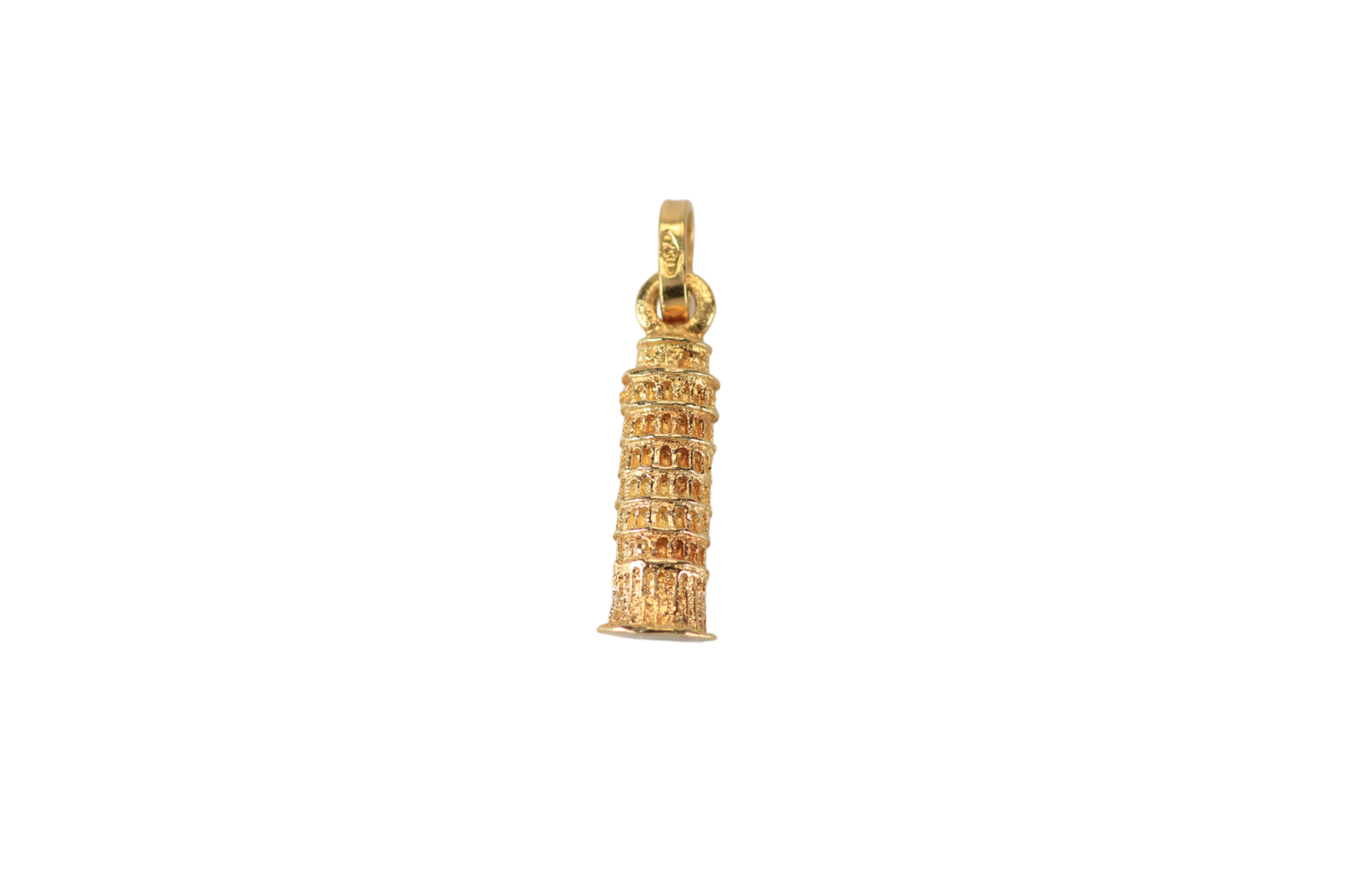 El dije Torre Pizza en oro de 18k,con un tamaño de 22 mm por 5,30 mm,es una pieza divertida y única que captura la esencia de la cultura culinaria. Su diseño distintivo lo convierte en un accesorio ideal para quienes disfrutan de la gastronomía y la diversión. Este dije,fabricado con oro de 18k,ofrece una garantía de por vida,asegurando que su atractivo perdure a lo largo del tiempo.