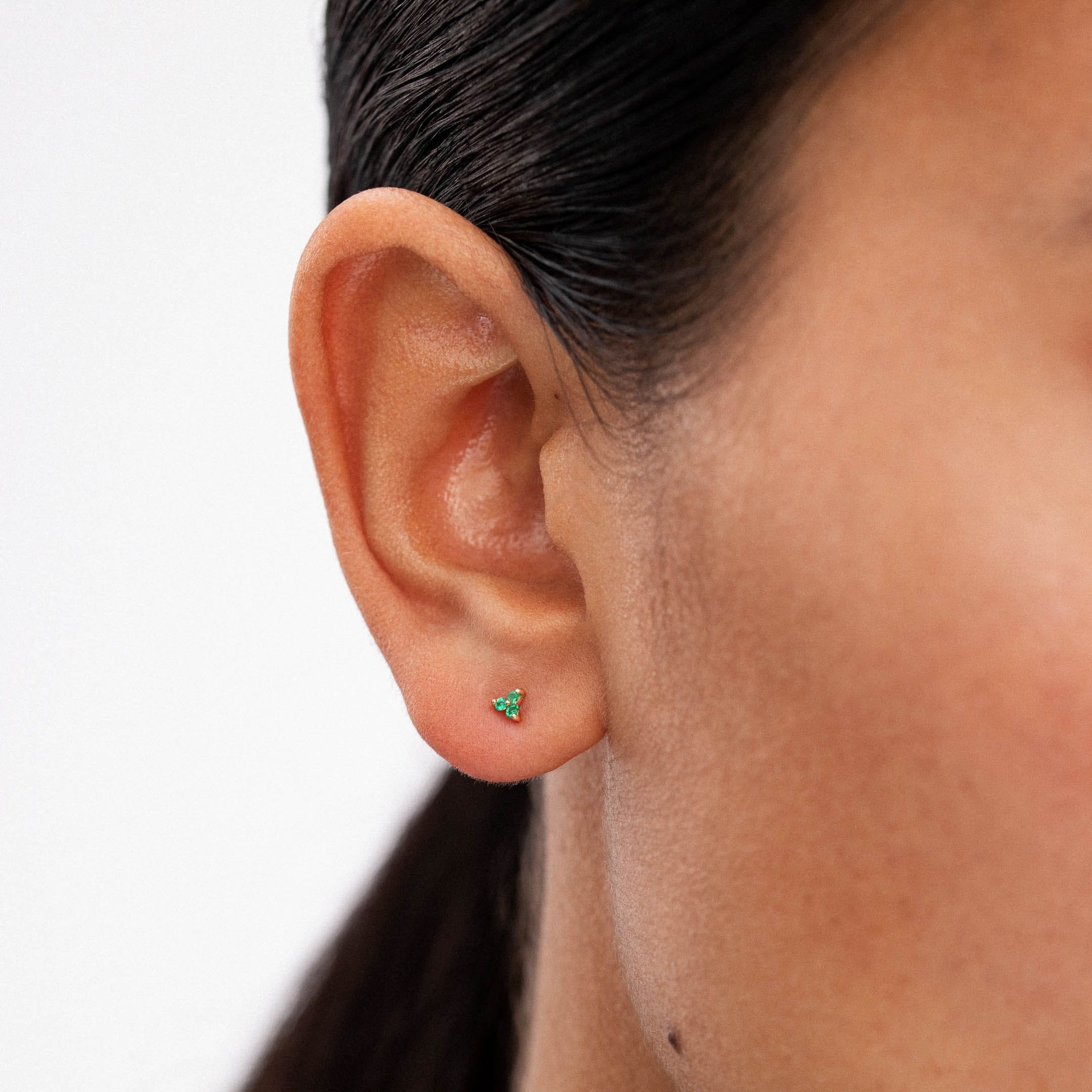 Topos Esmeralda Triada (0,18quilates) hechos en oro de 18 KILATES. Tres esmeraldas dispuestas con elegancia para resaltar un estilo natural y sofisticado. Ideales para quienes aman las joyas con significado y encanto atemporal. Regálalos o date el gusto de lucir el verde profundo de estas piedras preciosas.