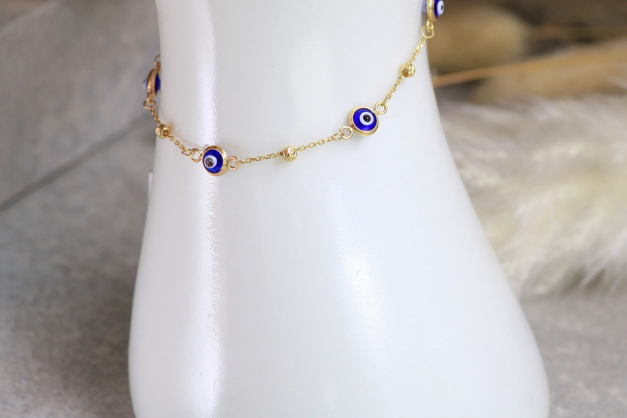 Una joya sofisticada y sutil. El Pulso Ojo Horus Blue Rich en oro de 18 kilates de 17cm y 0,5mm destaca por su diseño fino y elegante.