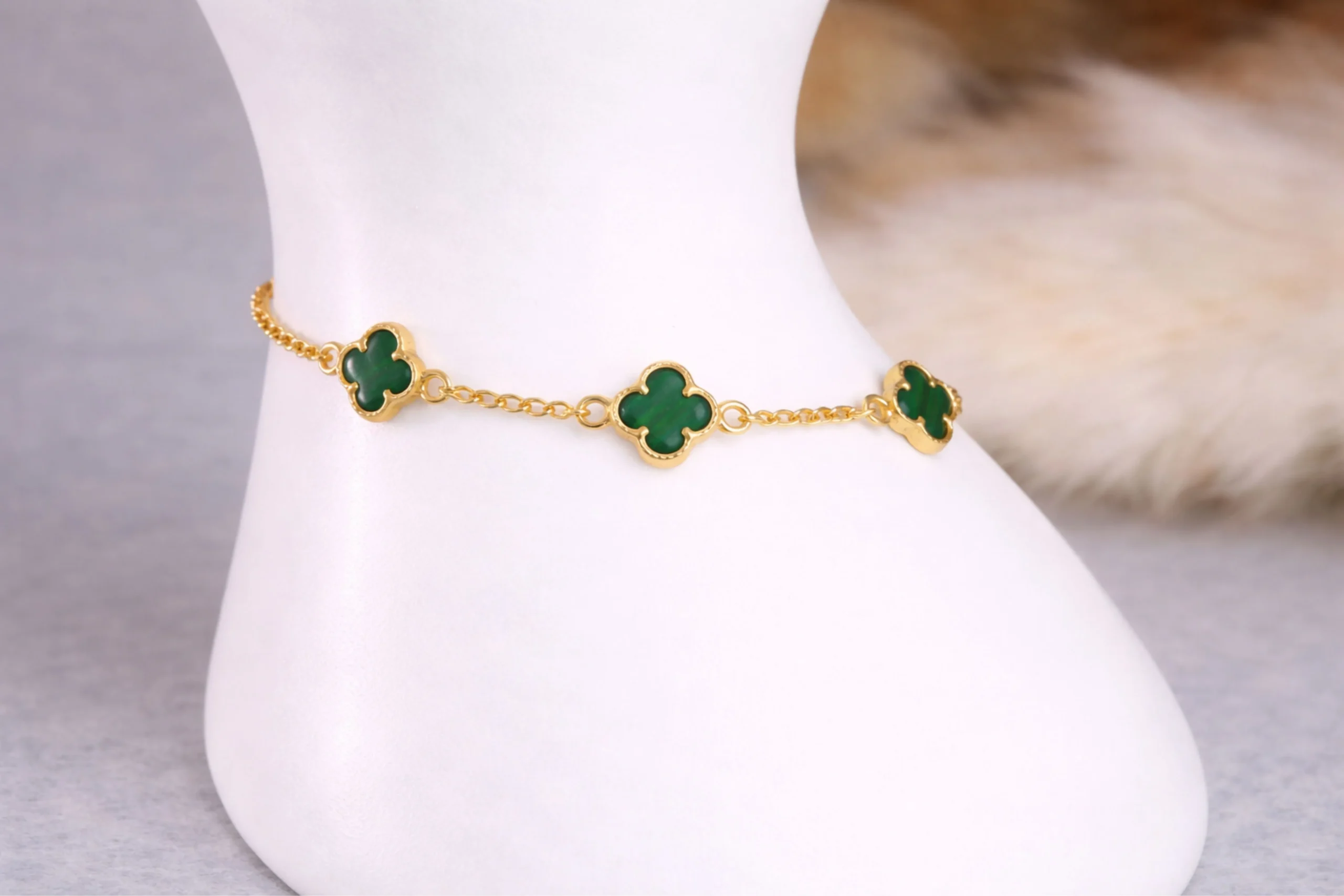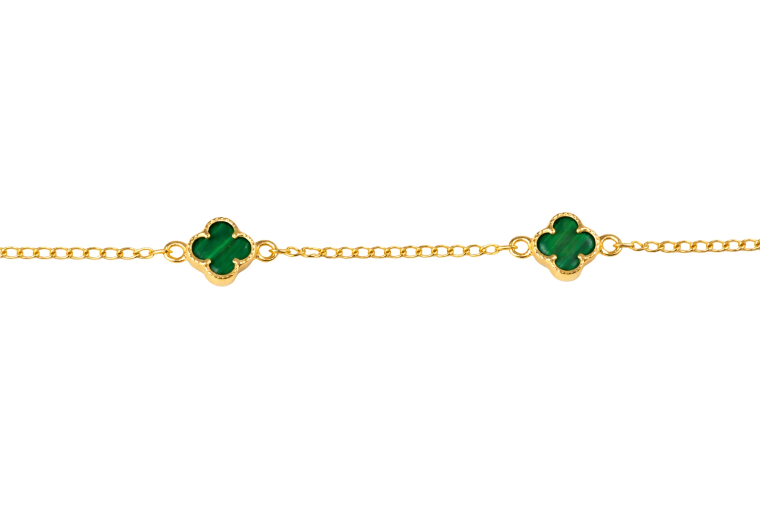 Una joya elegante inspirada en la naturaleza. El Pulso VC&A Malaquita tres tréboles en oro de 18 kilates de 19cm con 7,1mm y 0,6mm destaca por su diseño delicado y simbólico, donde la malaquita aporta color y armonía. Elaborado cuidadosamente, ofrece ligereza, brillo suave y comodidad. Ideal para regalar o acompañar looks sofisticados, es un pulso pensado para perdurar.