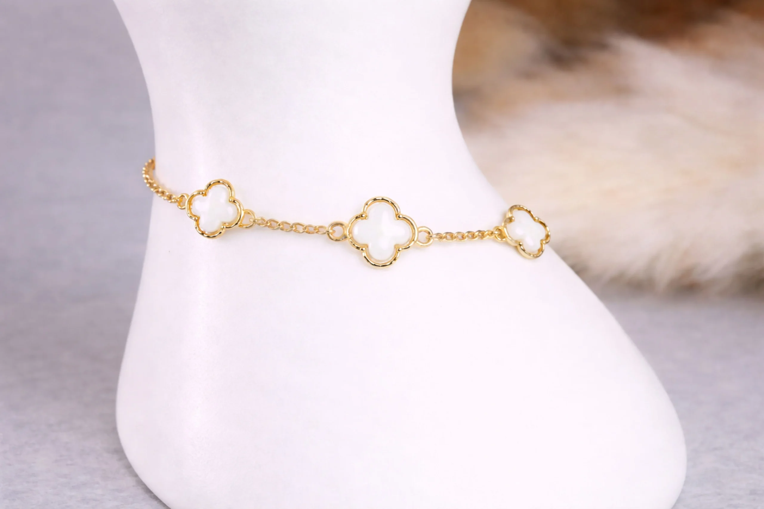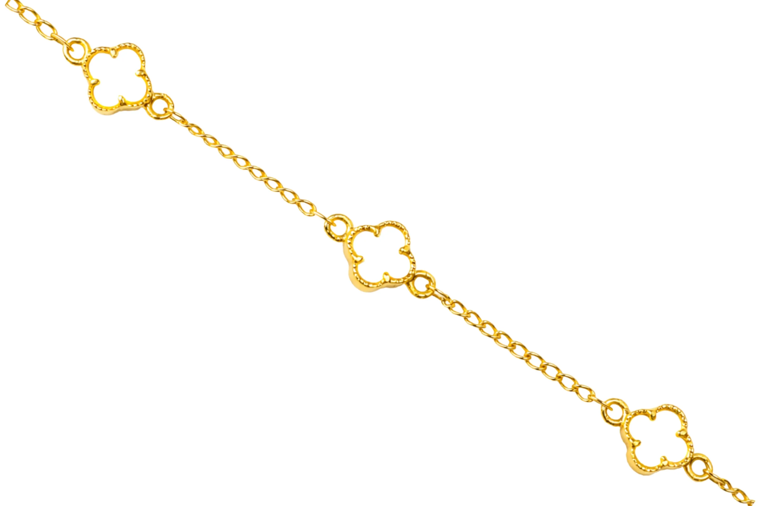 Una joya con encanto natural y diseño armónico. El Pulso VC&A Nácar tres tréboles en oro de 18 kilates de 18,5cm con 9,5mm y 0,9mm destaca por su presencia delicada y estilo sofisticado. Elaborado con acabado refinado, ofrece brillo suave y comodidad. Ideal para acompañar cualquier look, es un pulso pensado para perdurar.