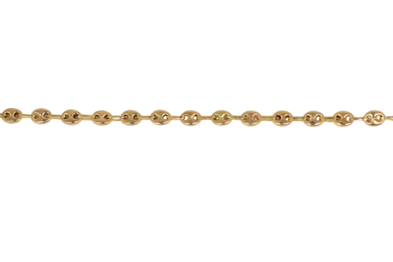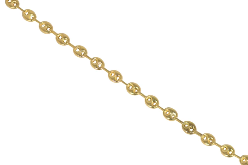 La tobillera Gucci de 25,5 cm de largo y 3,1 mm de grosor, con 1,4 mm en los eslabones, elaborada en oro nacional de 18 kilates, combina elegancia y delicadeza. Perfecta para regalar o para quienes disfrutan lucir joyas únicas que transmiten estilo propio.