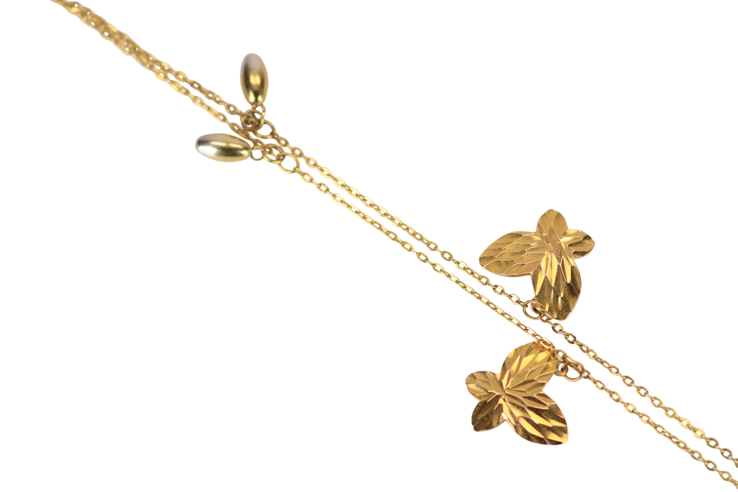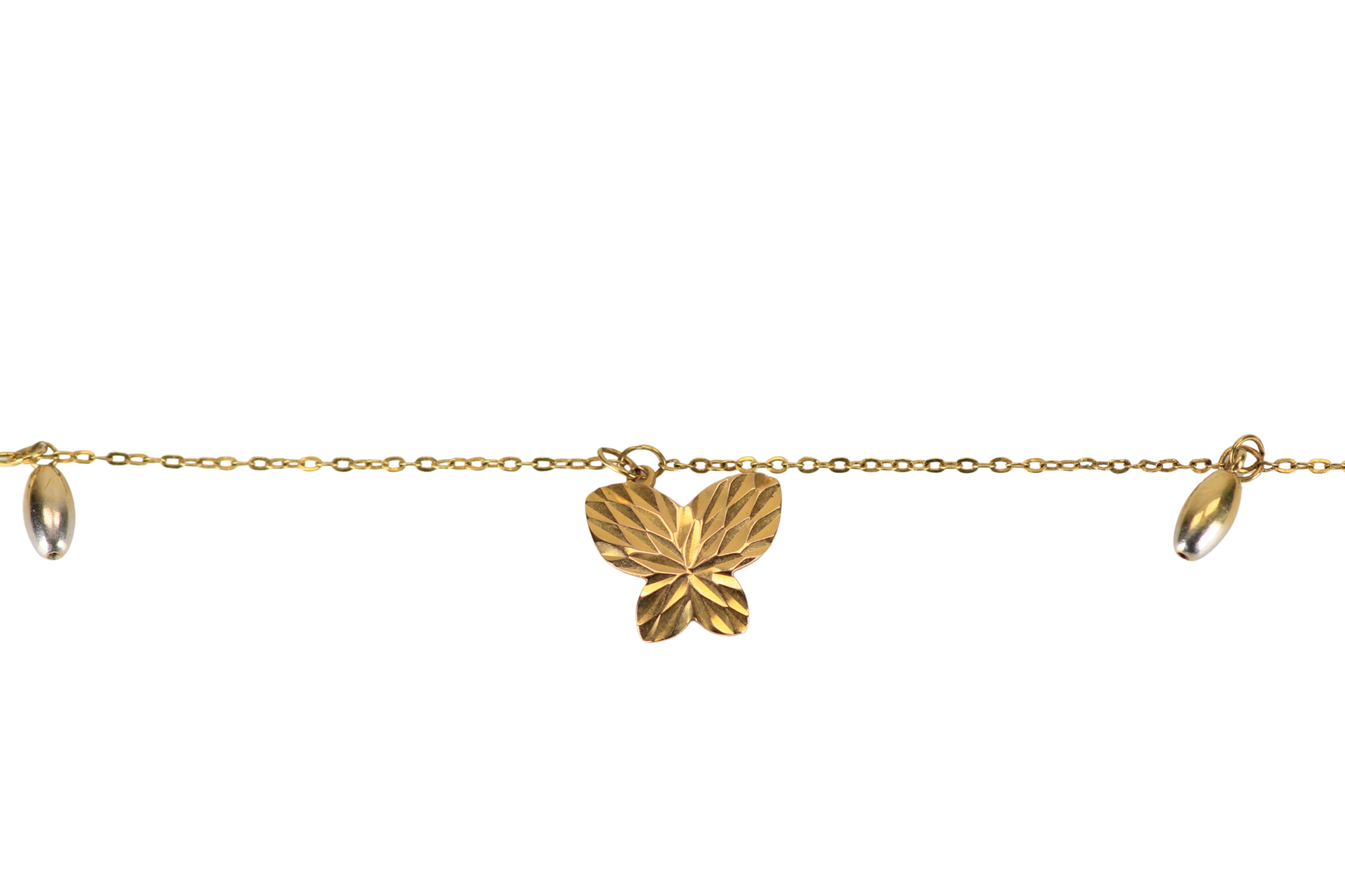 La Tobillera Mariposas de 25cms en oro de 18k,con un delicado grosor de 0,90mm,es una joya femenina y encantadora. Adornada con pequeños dijes en forma de mariposa,esta tobillera aporta un aire de frescura y delicadeza a tu estilo. Perfecta para lucir en cualquier ocasión,desde una salida casual hasta una celebración especial,su diseño en oro de 18k asegura un brillo duradero y una calidad inigualable. Con su garantía de por vida,esta tobillera es una pieza que perdurará,manteniendo su belleza intacta a lo largo del tiempo.