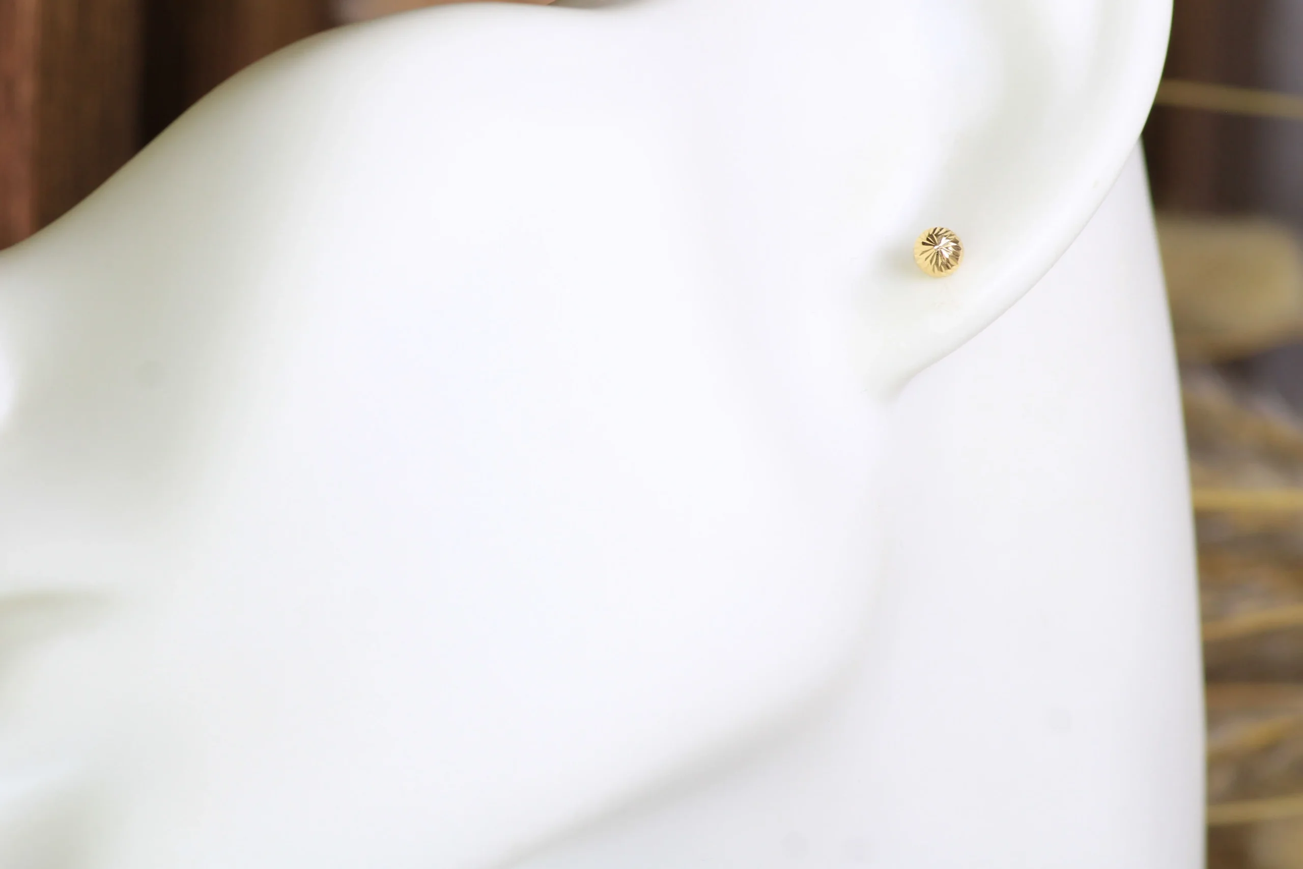 Una joya delicada con destellos sutiles. Los Topos Bola #4 Diamantada en oro de 18 kilates de 4mm destacan por su textura brillante que aporta un toque refinado y elegante.
