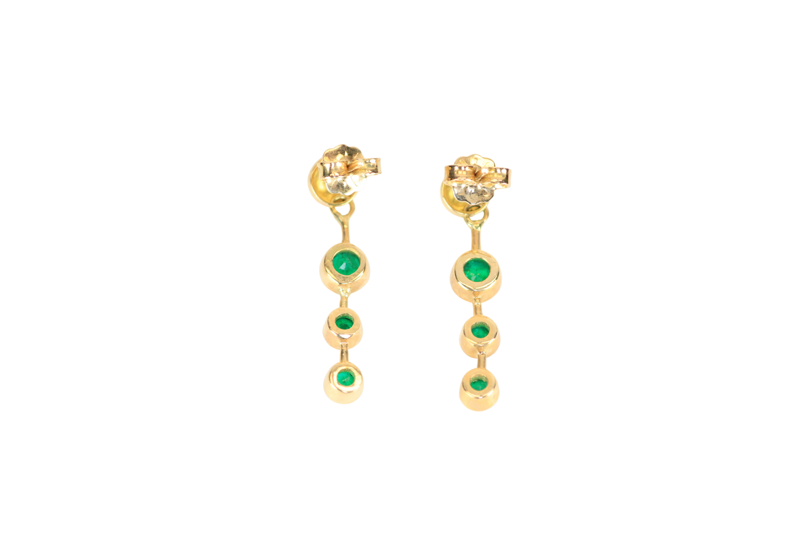 Topos Esmeralda 3 Lunes 28,27mm-5,62mm presentan un diseño artístico de tres eslabones con esmeraldas montadas en oro de 18 KILATES. Su estilo fluido y elegante es ideal para realzar cualquier atuendo con un destello de color y sofisticación. Una pieza para regalar o lucir con orgullo en momentos especiales.