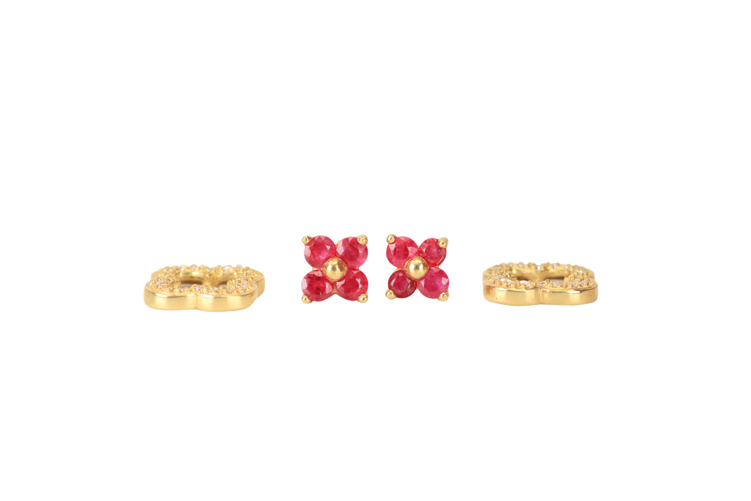 Topos Rubí y Diamante VC&A Flora 11,9mm están hechos en oro de 18 KILATES con rubíes intensos y diamantes brillantes, en un diseño floral de inspiración clásica. Una joya vibrante que habla de amor y pasión. Ideal para regalar una declaración poderosa o para lucir con carácter y elegancia.