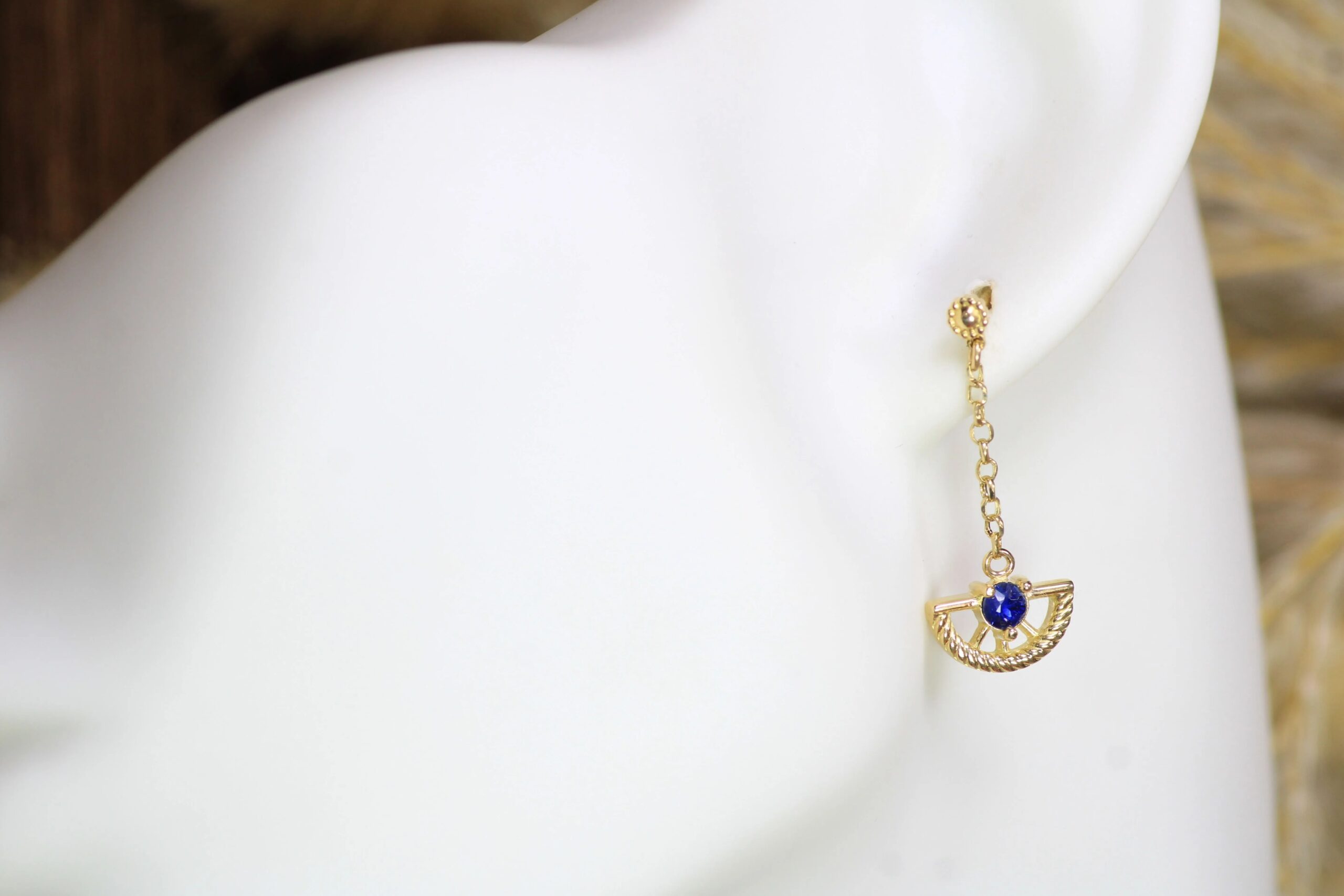 Los Topos Zafiro Abanico 32mm-11mm ofrecen un diseño impactante que combina color y estilo, convirtiéndose en un accesorio perfecto para levantar cualquier look. Son un regalo ideal o una elección personal para quienes disfrutan de joyas con carácter y presencia.